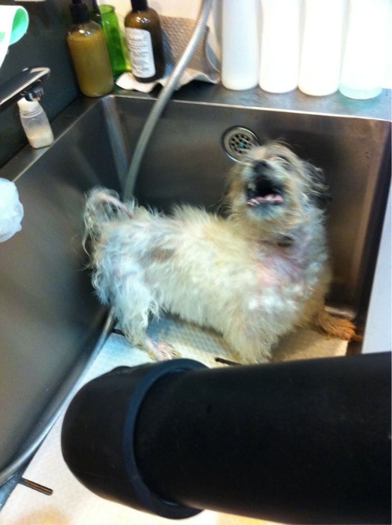 ようやくシャンプーできました! 相変わらず、ガルガル~ 止まるという事を知らないので、 ドッグバスの中でドライヤーします。 すごい怒ってる!(◎_◎;) 風や吹き出し口に噛み付いてきます! 昔は、咬むと離さずに加圧してきて、手の甲いっぱいに紫色のアザができたことも(>_<) その後、真っ黄色に…。 今も怒り方は変わらないですが、 たまに咬んでも離すようになりました♪ 今日は顔周りだけカット。 終了後、 軽快にウロウロするノフ。 なかなかお顔が撮れないので、 捕まえました。 うぅ~~ から、始まり、、 ぅわん!ぅわん! がうぅ~~!! 振り切って逃亡!! ま、ま、 そうだよね。 ![]() にほんブログ村 ★ノフはシーズー保護団体エンジェルズ・テイルの保護犬ですU・x・U ★ ★悪性リンパ腫と闘って15ヶ月。温かく見守ってください★