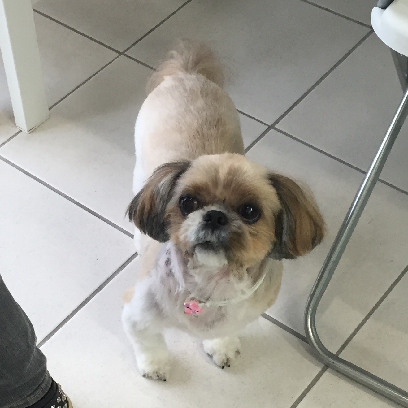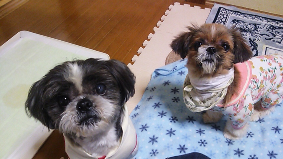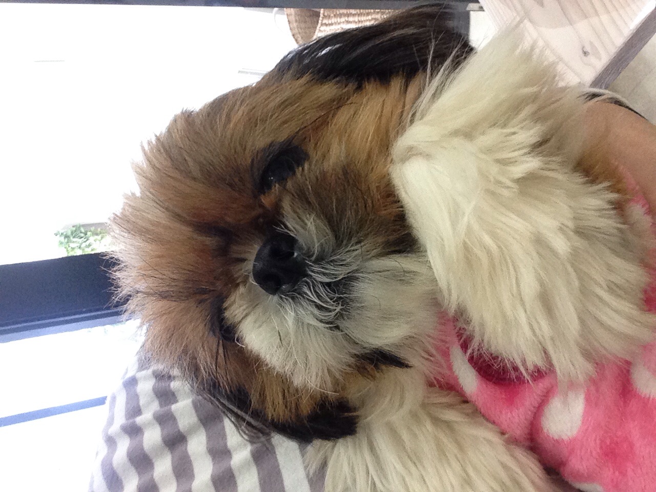 しばらく潜伏してしまってました〜(;^_^A オフ会は欠席でしたが、皆さんのブログで楽しませてもらいました! ありがとうございます♪ さて、卒業犬といえば、 数少ない(;^_^A、元・我が家の預かりっこから、時々、幸せ報告やお写真いただいています! なかなか報告してなくてすみませんっ。 つい、ひとりニンマリとして、 満足しきってしまいますね〜。 初の女子預かりっこAGGちゃん 亀の子たわしのオバケを思い出させる可愛いポーズ お顔が見えない寝ている写真でも、 私からすると見所があります(^-^) 毛のツヤが良くなったなー、とか。 しっぽ伸びたーとか。 オフ会で卒業犬アンちゃんと♪ とっても可愛いおそろの服で。 シーズー女子達の笑顔のサービスカットは難しいよね〜。 AGGちゃんママ、み〜さんのブログで、 「薄々、予想はしていたけれど…」 のフレーズにウケた(*^o^*) 思わせぶりなまぶたも見えなくなり、 ますます姫になってるAGGちゃんです。 次はあのこを紹介します(^_−)−☆