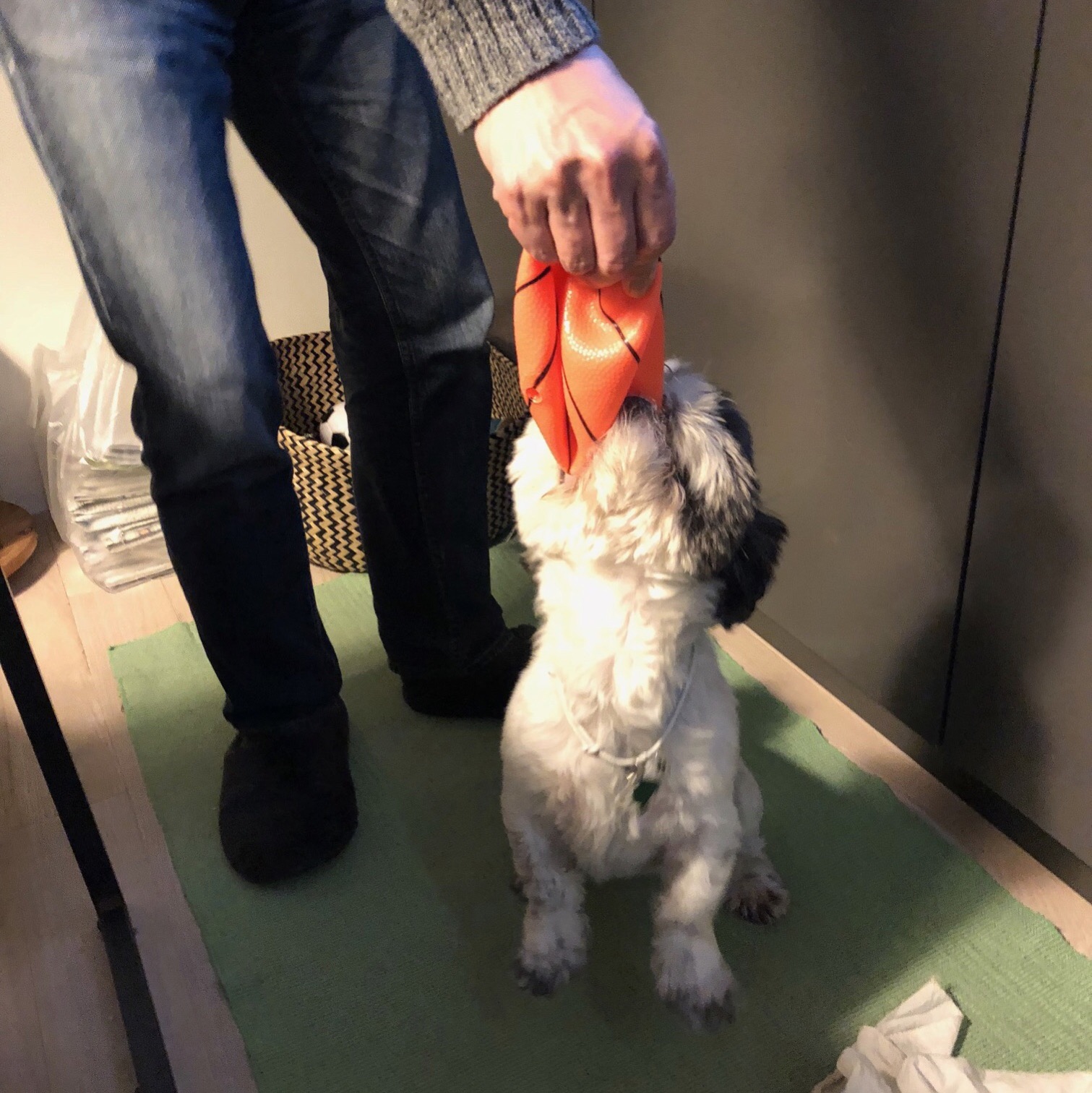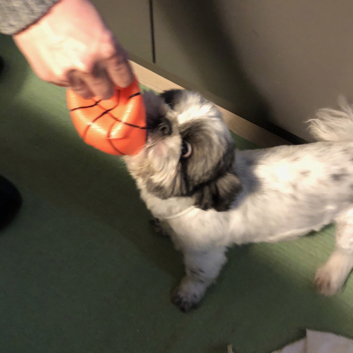 今、夢中なのは、 先日掘り出した卵型オモチャ。 自分でゲットしたものには、 すごい執着があるようです。 ちょうど、 アゴ、大丈夫なのか? と心配になってきていたので、よかったです。 このまま、撫でてもらいにきたり、 ぶつかってアピールしてきたりするからね〜。 ☀︎ 俺のだ! 神ボールとローテーションで、遊んでます。 Sol(ソル)はAngel's Taleの保護犬です Sol(太陽)と陽気な暮らし〜★トライアル予定! (仮名・オス・申告6才) 日々の様子 >>>ソル日記