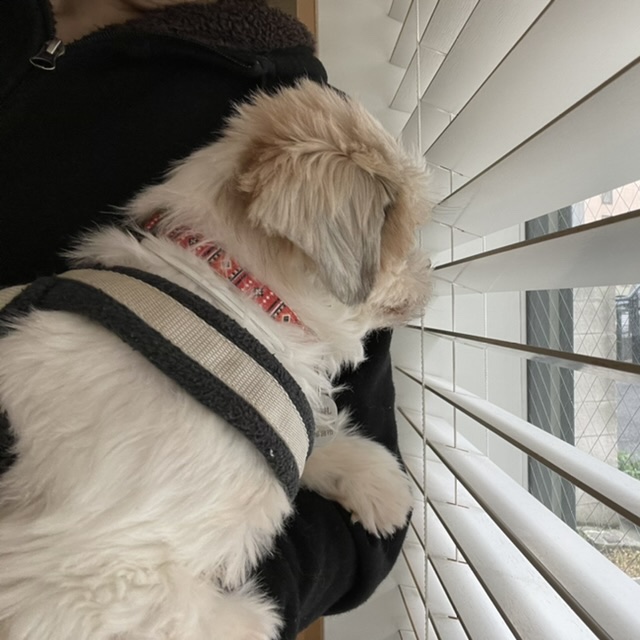 抱っこで移動。 怖くて、ちょっと、ちびっちゃったよ〜 抱っこしたまま、外を眺める。 落ち着いてます。 玄関ドアを開けて、抱っこで外を見学。 ご近所さんちに来たパルシステムのお兄さんの仕事ぶりを見学したイルちゃん。 椅子に座ってみた。 困るイルちゃん。 目が泳ぎまくりでしたが、 長い間、大人しく抱っこさせてくれました♪ はぁ〜、びっくりした〜 ご支援金で、ハミガキおもちゃとフードを購入させていただきました♪ ありがとうございます! イルはAngel's Taleの保護犬です 人との暮らし研究生★里親募集中! (仮名・メス・推定4才) 日々の様子 >>>イル日記 イルについて>>>プロフィール 保護時の検診>>>代表ブログ PR