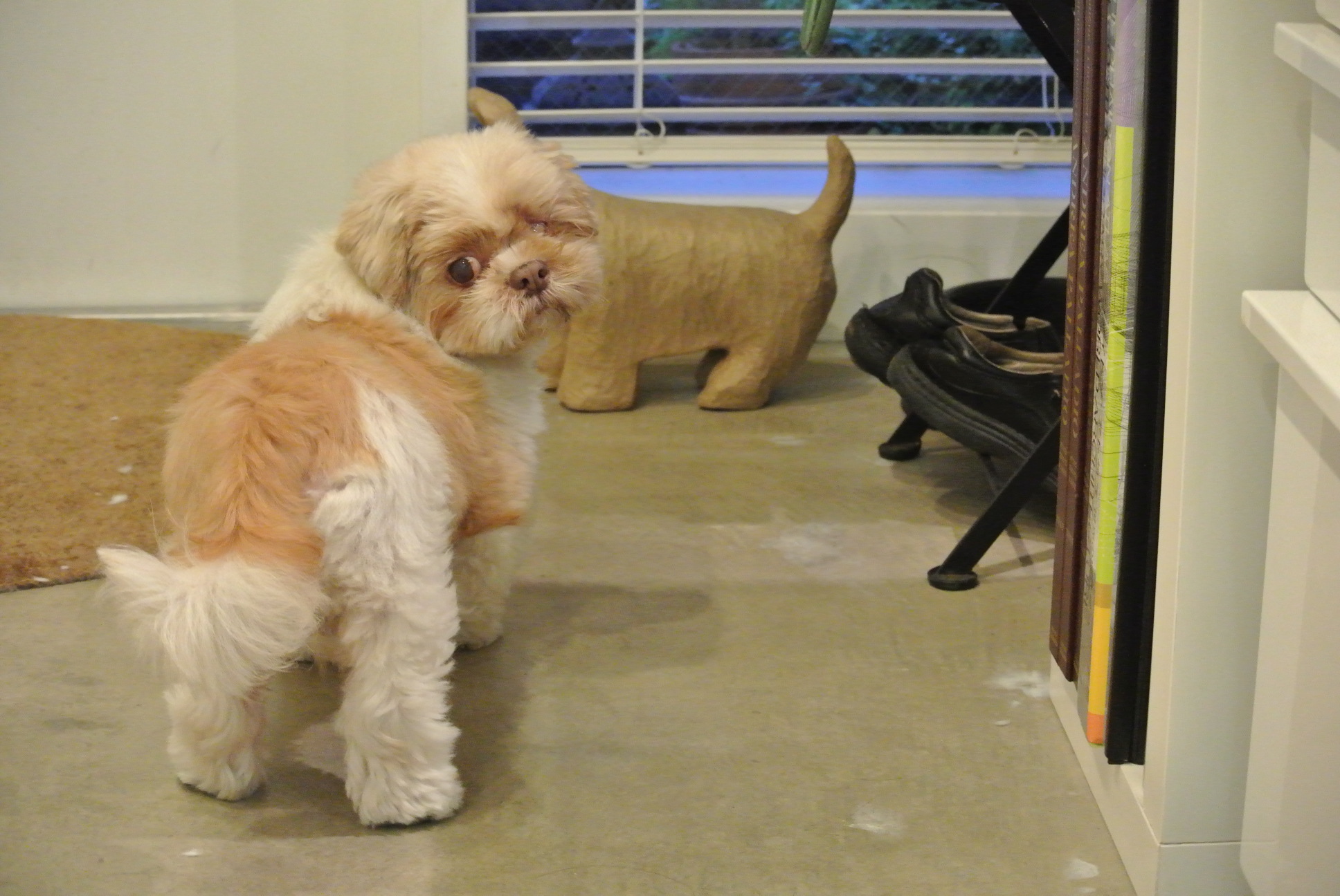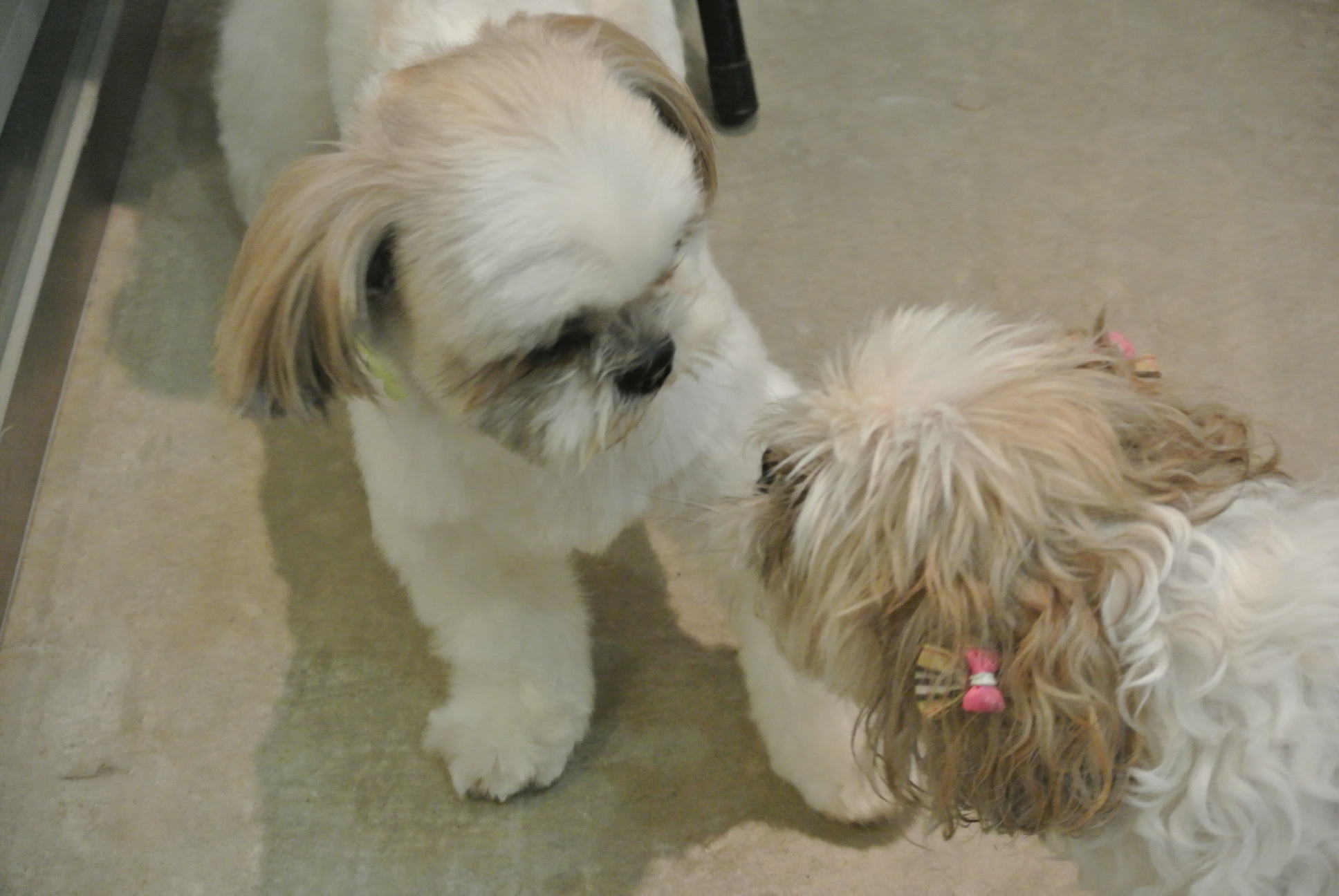 里親募集中!の保護犬がトリミングに来ましたよ。 シーズーのりつ子ちゃんと マルチーズのやまぶきくん初めて会ったマルチーズのやまぶきくん。 とても若くて、元気! 遊びたくって、遊びたくって、はしゃいでいました。 はしゃいでいる…というかハイパー! ちょっとあぶないのでクレートに入ってもらいました。 動きが早いので、真っ白きれいで、かわいい姿を撮ることができませんでした ![]() 預かりさんぶろぐでその後(こちら)を見てくださいね! シーズーのりつ子ちゃんは、 とても小型で、まったりシニアさんです。 かわいいです。 (写真ぶれてます~ )かわいい後姿 (写真の腕に限界が~ )シーズーのりつ子ちゃんとマルチーズのやまぶきくんは、 「ドッグレスキュー」の保護犬です。 預かりさんブログ http://blogs.yahoo.co.jp/oparu08 ドッグレスキューの里親会のお知らせ http://www.dogs-rescue.net/?page_id=79 いい出会いがあるといいね!