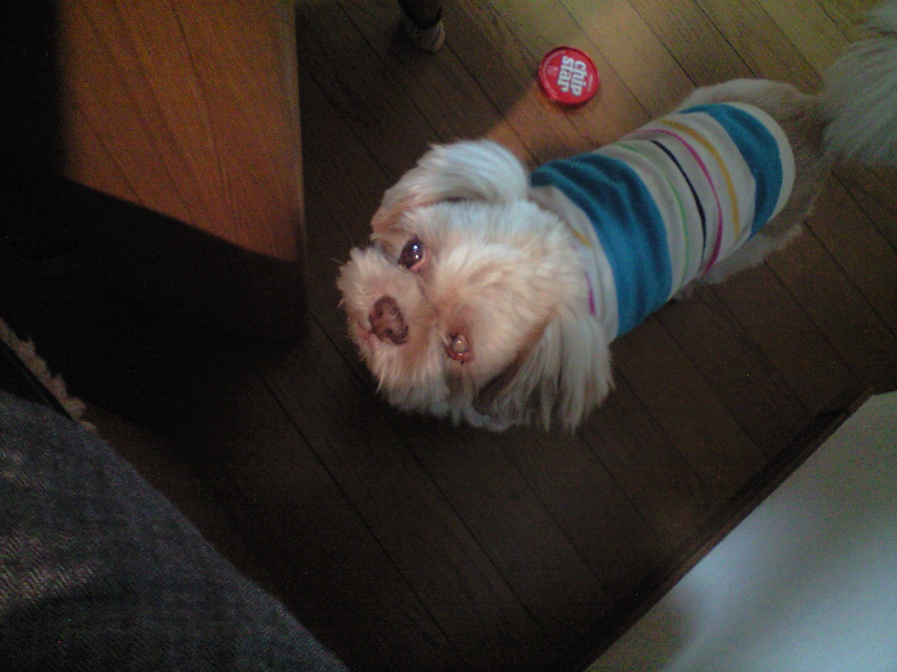 ついにトライアル最終日となりました。 ファムくん、お洋服2枚重ね ![]() 寒いので、家の中で着ていた服に、お散歩の時だけ、もう1枚重ね着したそうですよ! S様からのお便り 今日は寒かったので、「ファムくんおいで〜」と声を掛けたら、お膝の上で湯たんぽになってくれました(*^_^*) お散歩で、元気くんに似た、14歳のシーズーくんとご挨拶しました。 良い感じ?と思ったら、一歩動かれただけでびっくりして後退りしてました…f^_^; 湯たんぽファムくん ![]() いいですねぇ~ ![]() ファムくん、犬も猫も好きなのですが、ちょっと近づかれると、怖くなってしまいます ![]() 後退りしてお別れした後も、名残惜しそうに見送るファムくんです。 そして、ついに、トライアル期間が終了しました! S様から、正式譲渡のお返事頂きました ![]() ![]() ![]() ![]() お名前は、ファムのままです。 本日、頂いたお写真です。 正式譲渡のお返事をいただいた後にいただきました。 S様からのお便り ファムくんの譲渡、有難うございました。 ファムくんの犬生が穏やかなものになるように、生活していきたいと思います。 元々、ファムくんは穏やかですけどね♪ 写真は、長男に撫でられて、ヘナヘナになっているファムくんです。 これからも色々なファムくんが見られるように、安心して暮らしてくれたら嬉しいです。 ファムくんを助けて下さり、有難うございました。 S様のお家に到着した時から、なんだか、なじんでいたファムくん。 ようやく、幸せをつかむ事ができました ![]() 誰よりも穏やかなファムくん。愛されるべき存在です。 いつまでも、家族と一緒に。。。 H A P P Y ! ! F A M I L Y 保護犬だったファムくんを、暖かく見守っていただいた皆様、 ありがとうございました! <ファムくん写真集> ファムくんが家族に会うまでの軌跡を写真集にしました。 里親様(S様)と私の分、2冊だけの写真集ですが、ネットでご覧いただくことができます。 URL : https://www.photoback.jp/f/3482581210091744090/DD9D4D14/ 閲覧用パスワード:famfam ※上記、閲覧用パスワードをご入力していただくことで、閲覧できます。