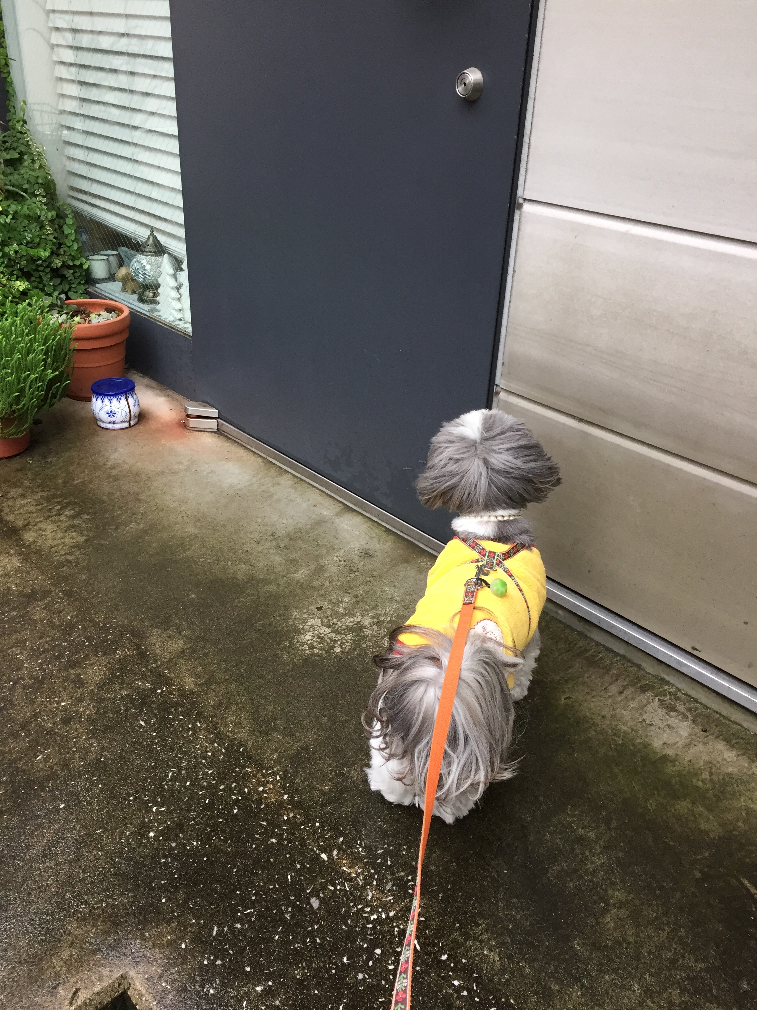 今朝のお散歩、0m。