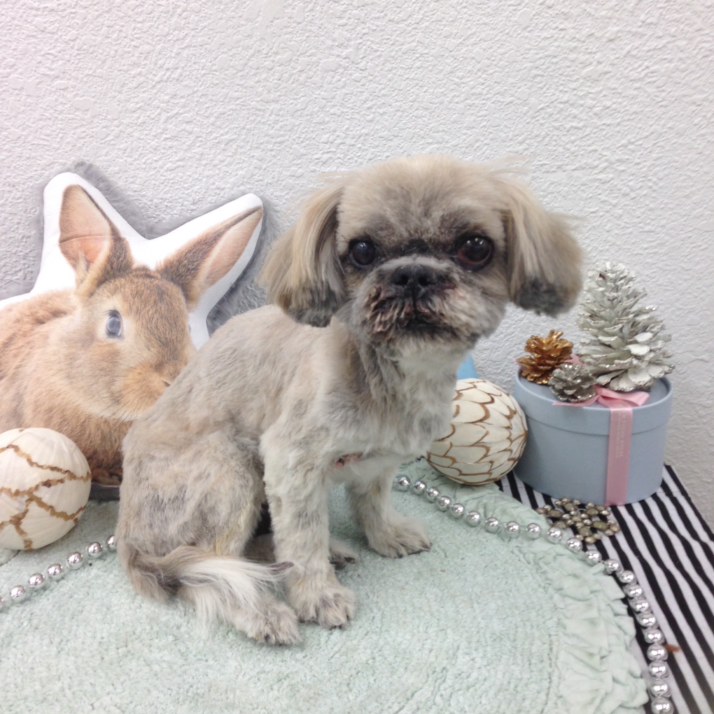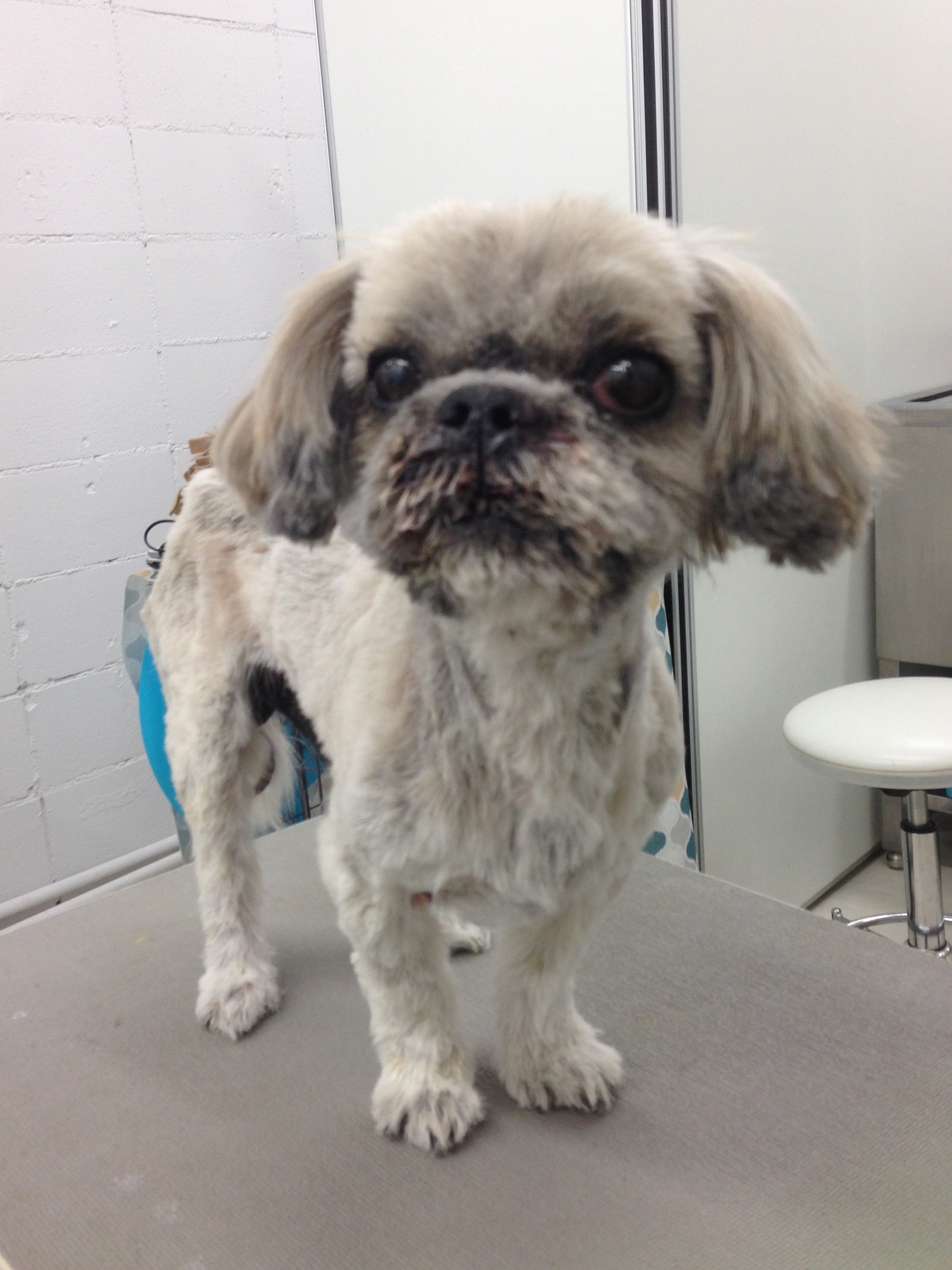 水曜日に保護されたシーズーくん。 トリミングの為にやってきました。 状態が悪く、鼻の穴から、 血混じりの膿なのか、出て塞がっていて、 口呼吸しています。 とても苦しそう。 呼吸困難にならないように、お口周りはあまり洗えなかったけど、なんとか、 シャンプー、カットしました。 表情はしっかりしています。 怯えるでもなく、落ち着いていて、 お利口さん。 ガリガリだけど、 しっかり立てています。 カット中も、自ら、きちんと立っていてくれました。 皮膚も脂や菌でだいぶ悪いです。 呼吸に集中しているのか、 気はしっかりしている感じ。 ぺこちっちさんが撮ってくれました。 カット中、舌を出すことがなかったので、 患部のせいで、舌を出せないのかと思ったら、 お水飲んだときに、出せていました。 予定を変更してのロングドライブ。 ぺこちっちさん、お疲れ様でした! 仮のお名前は、リョーマくん。 リョーマくん、君は、 治るんだ!! 良くなるんだ!! 平凡な日常を、一刻も早く、取り戻せますように☆ プヨンちゃんも、 幸せにな〜〜れ♡ P ぴゅ〜〜(北風) P プルプルッ(寒いっ) A あったまりたいなら P プヨンがいるよ 冬バージョン❄︎ マシはAngel's Taleの保護犬です ちいさなイケワン★里親募集準備中 (仮名・オス・推定10才) 日々の様子 >>>マシ日記 マシのこと>>>プロフィール PR