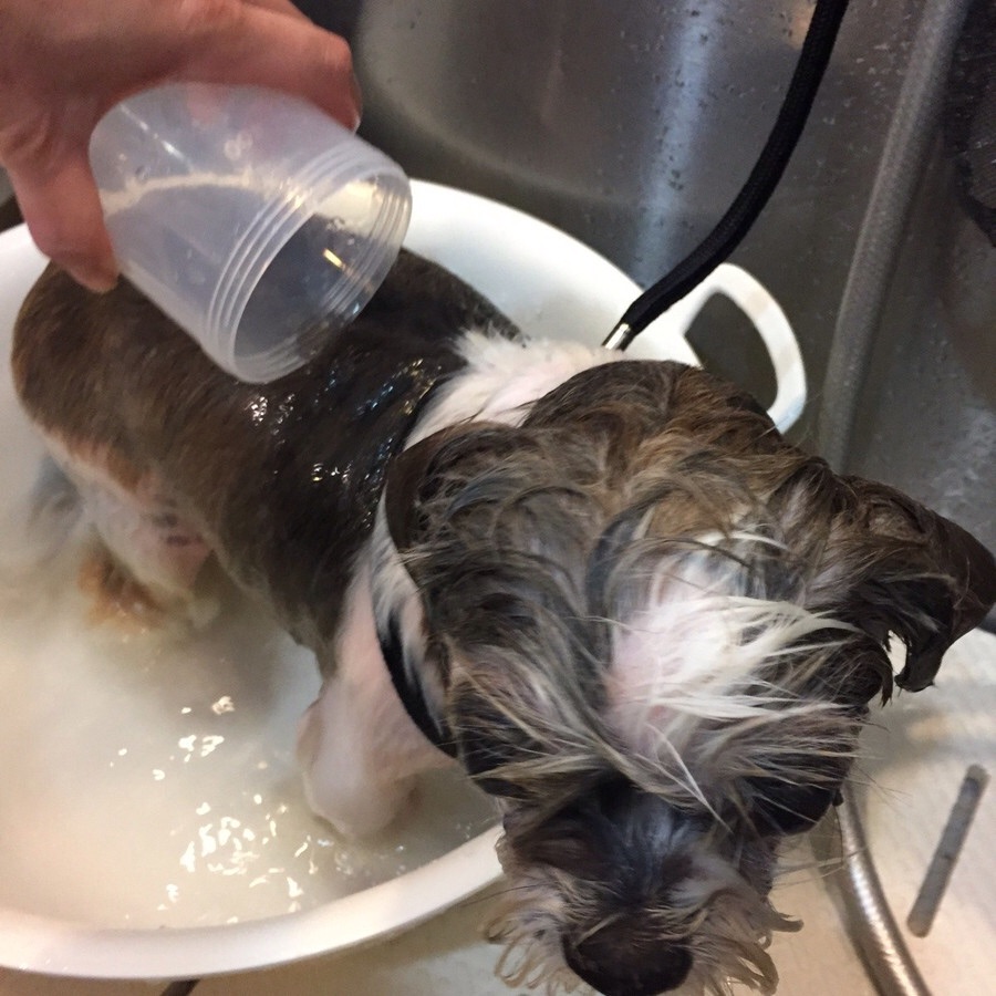 トライアルに向けて、サッパリカットしました! 時間がなくて、まだ、カット途中です〜〜 涼しくて寝心地もいいかな ツバサくんのシャンプー覚え書き! ☆スタンダード☆ ・マラセブシャンプー(下洗い、本洗い、つけ置き10分) ・お肌のコンディショナー(2、3分かけ流し、ゆすぎなし) ・Ag+コンディショナー(タオルドライ後、部分的にスプレー) ☆フルコース☆ ・スピトリ(脂落とし) ・アロビーンシャンプー(下洗い、保湿) ・マラセブシャンプー(本洗い、抗菌、つけ置き10分) ・お肌のコンディショナー(2、3分かけ流し、ゆすぎなし) ・Ag+コンディショナー(タオルドライ後、部分的にスプレー) ☆クイック☆ ・マラセブシャンプー(本洗い、つけ置き5〜10分) ・Ag+コンディショナー(タオルドライ後、部分的にスプレー) 普段は、スタンダードメニューで、 時々、または、汚れているとき、ケアが必要な状態のときにフルコース、 時間が取れないときはクイックで、 シャンプーケアする事をオススメします! かゆみ対策に、お肌のコンディショナー(リンスがわりにも)とAg+コンディショナー(いつでもできるスプレー)を入れてます。 湯温、温風は、温度低めで。 これから、高温多湿の時期。 できるだけ涼しげな環境にするのも効果的。 以上、現在のツバサくんのシャンプーケアでした! 皮膚ケアが必要なツバサくんですが、 よろしくお願いいたします! ツバサはAngel's Taleの保護犬です ツッコミどころ満載!ボケ担当のツバサくん!★トライアル予定! (仮名・オス・推定10才) 日々の様子 >>>ツバサ日記 ツバサのこと>>>プロフィール ツバサくん、トライアル予定!!! プヨンちゃんも、 幸せにな〜〜れ♡ P パパッと P プレシャンプー A アフターシャンプーのケアして P ピカピカに! 短髪ならすぐ乾くし〜〜(^-^) ケアも楽しい♪ PR