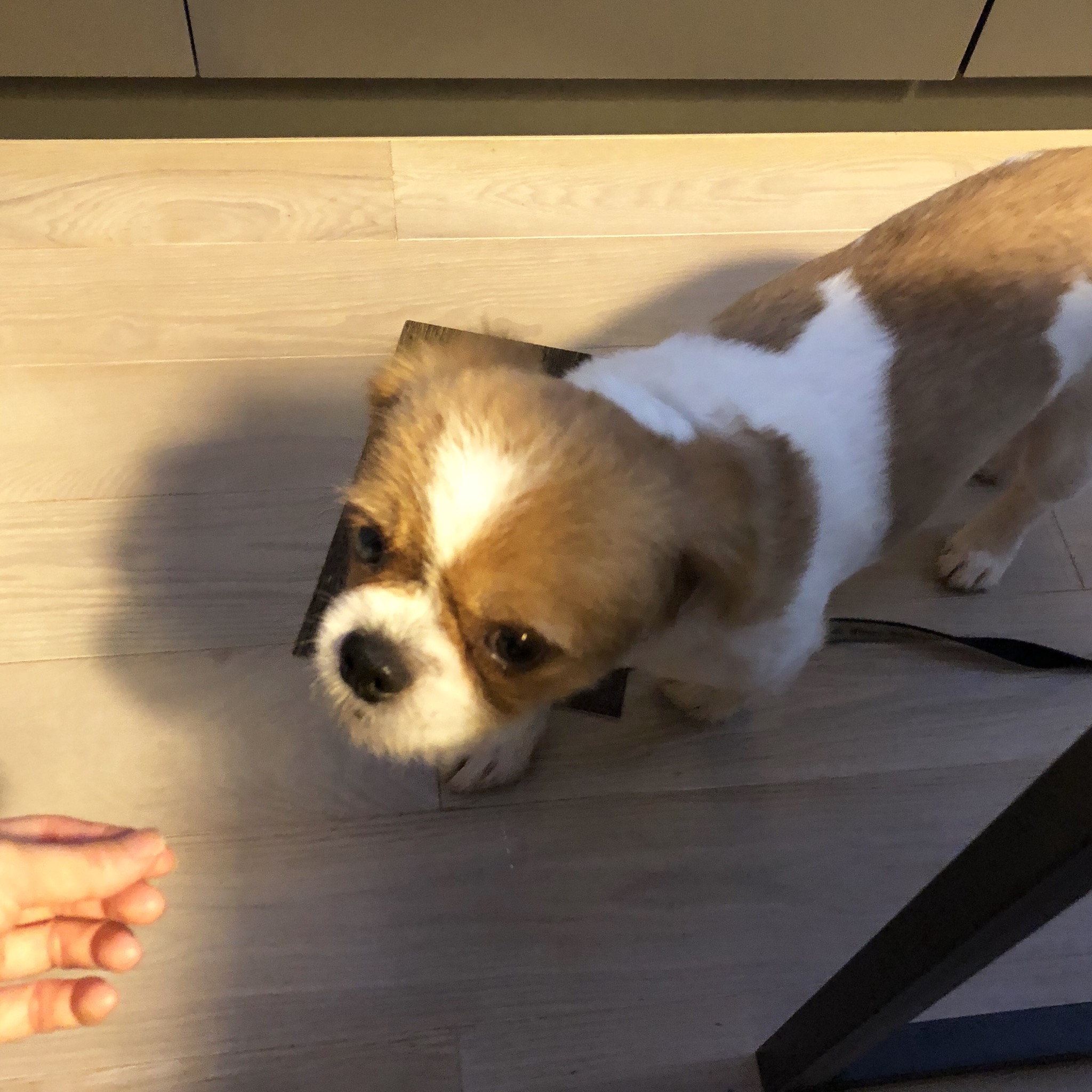 モーイくんと暮らしていたら、 庭に、たぬきが出没するようになったおうちの気分になりました。 エサをしかけておくと、 そっと出てきます。 あ、今日もきたきた。 じっとしてれば、 手元まできます。 今日は、早めに出て来たな〜、とか、 結構、近くまで来たな〜とか、 観察しています。 昨日から持ち去り方が変わりました。 これまでは、低姿勢でバックしていっていたのに、 Uターンして、ダッシュするように! そこまで、慌てなくても〜 まぁ、でも、 散歩も行かず、寝てばかりだから、 運動になってよかったよ!? ☆今のところプロフィール☆ 性格:興味はあるけど怖がり 特徴:鮮やかな茶色と白のツートン 行動範囲:2メートル 寝床:かつては岩の上、現在ベッド こだわり:陣地で毒味してから食べる 好きなオヤツ:肉系 日課:人間ウォッチング、安全確認 トイレ:シートはめくる、うんちは隠す 目標:引きこもり解消 みなさんへのメッセージ: ・・・ モーイはAngel's Taleの保護犬です フロム ネイチャー・モーイ★里親募集準備中 (仮名・オス・推定4才) 日々の様子 >>>モーイ日記 モーイについて>>>プロフィール シリちゃんとキックくんが来てくれました! とっても可愛いふたり♡ シリちゃん キックくん ふたりは、6/17の里親会に参加します♪ PR