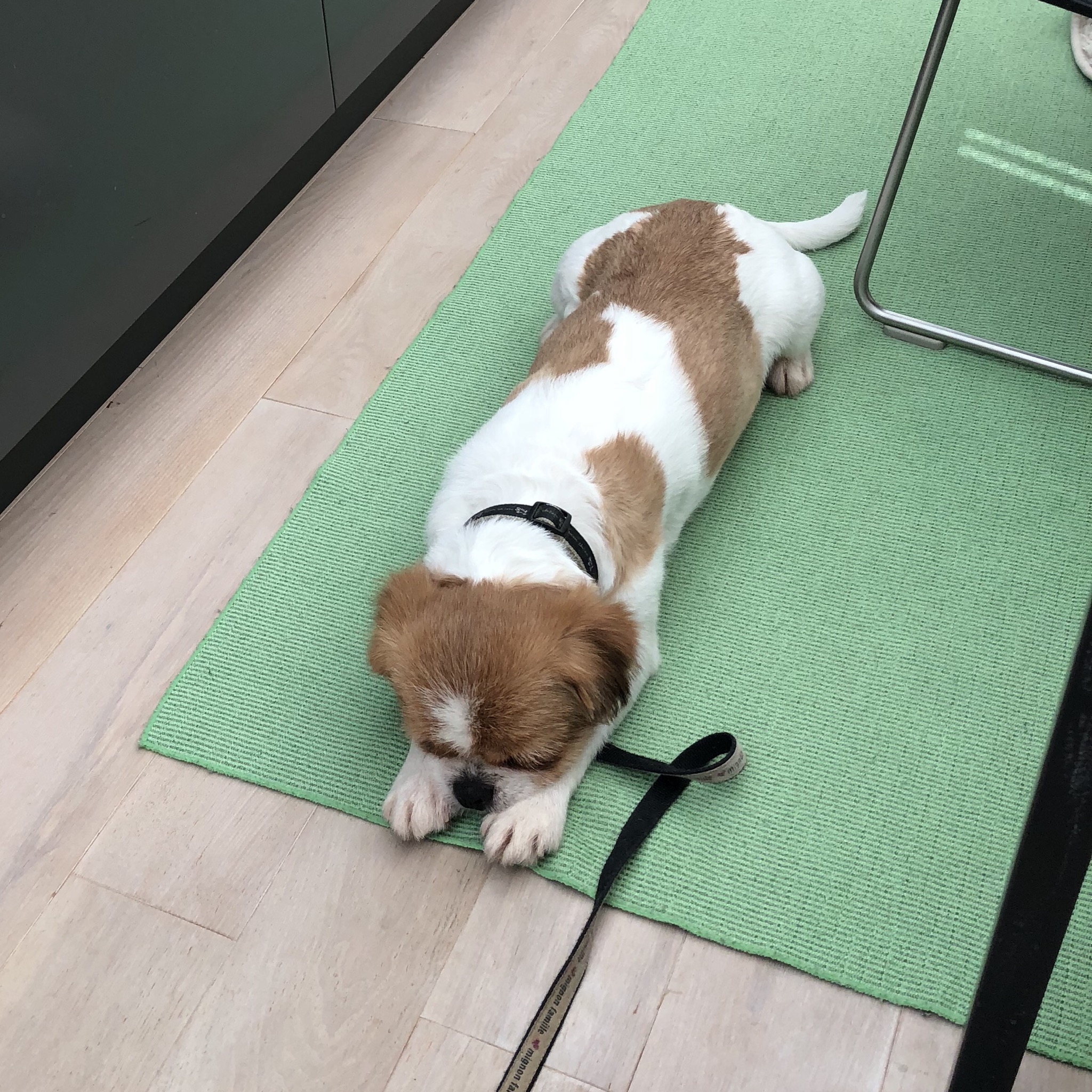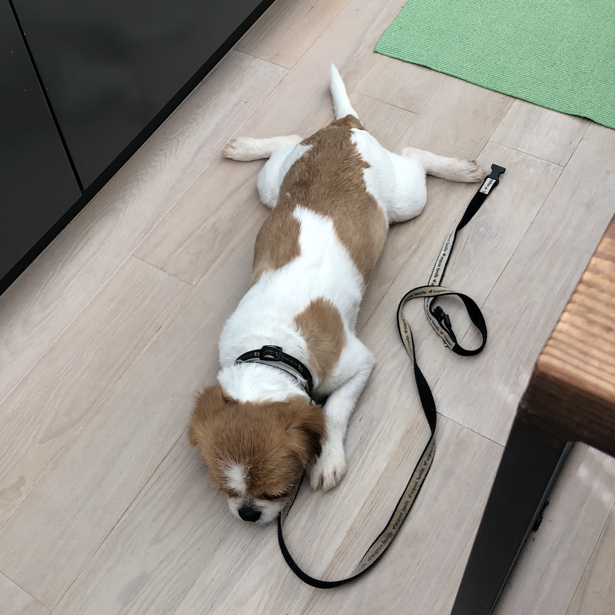 オヤツ欲しい〜 と、寄ってくる時、嬉しそうな表情が出てくるようになりました♪ 膝に手をかけて、オヤツをパクッ 手のひらに顔を押し付けて、パクッ モーイくんから触ってくるようにしています。 前よりも、サークルから離れています。 こんな寝方も ベタベタしたい方でなければ、今のモーイくんは、 とても飼いやすいとも言えます。 とはいえ、ステップアップもしなきゃね〜。 今、モーイくんが挑戦しているハードルは、 「立ってる私からオヤツをもらう」 です。 座ってると簡単なのに、立ってると違う。 ちょっとずつ、 だけど、ステップアップ☆しようね! ☆今のところプロフィール☆ 性格:興味はあるけど怖がり 特徴:鮮やかな茶色と白のツートン 行動範囲:2メートル 寝床:かつては岩の上、現在ベッド こだわり:陣地で毒味してから食べる 好きなオヤツ:肉系 日課:人間ウォッチング、安全確認 トイレ:シートはめくる、うんちは隠す 目標:引きこもり解消 みなさんへのメッセージ: ・・・ モーイはAngel's Taleの保護犬です フロム ネイチャー・モーイ★里親募集中 (仮名・オス・推定4才) 日々の様子 >>>モーイ日記 モーイについて>>>プロフィール PR