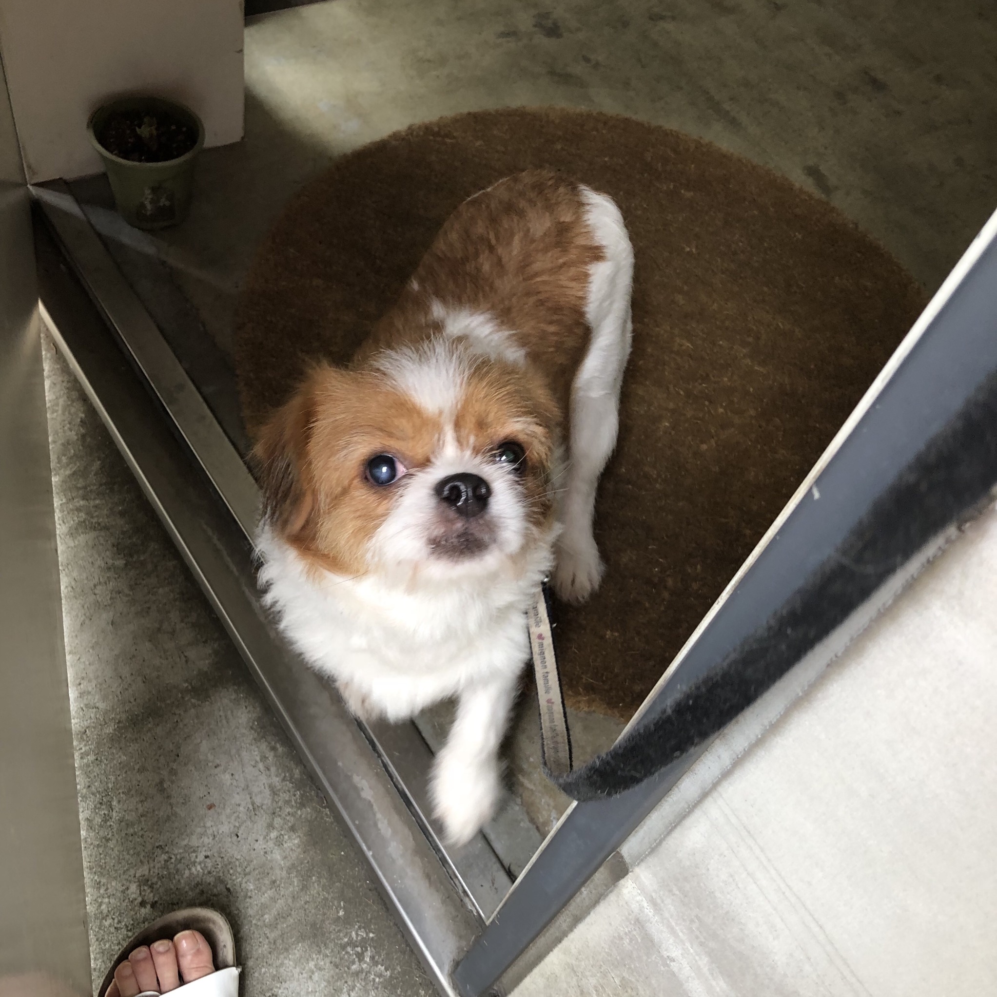 モーイくんが過ごしているのは、三階のリビング。 夏は暑いので、日中は、涼しい一階で過ごしてもらうのが我が家の習わしですが、、 (帰宅を待ってくれてる?姿を見るのが楽しみのひとつ。こちらは卒業犬NAHHOくん) 移動の抱っこは怖すぎるし、クレートインも怖くてウンチしちゃうモーイくん。 先日のトライは散々でした(>_<) 今日のトライは、クレートの中では我慢できたものの。クレートから出たら怖くてウンチ〜。 出てからだから、進歩だね⁉︎ 大丈夫そうかな〜と、思い、ちょっと、離れたら、、 OH!NO! ビビると、ちゃぶ台返しみたいに水をひっくり返すモーイくん! 案の定、ひっくり返してました! 外で暮らしてたモーイくん。 外には興味があります! 私のほうが、まだ自信ないだけ。 モーイくんは、外に行ける。 庭があれば、安心して練習できるんだけどなぁ。 慣れない場所が不安で、そばに寄ってきて、 過ごしてくれました! 初めて、頼られた気がします。 ☆今のところプロフィール☆ 性格:興味はあるけど怖がり 特徴:鮮やかな茶色と白のツートン 行動範囲:2メートル 寝床:かつては岩の上、現在ベッド こだわり:陣地で毒味してから食べる 好きなオヤツ:肉系 日課:人間ウォッチング、安全確認 トイレ:シートはめくる、うんちは隠す 目標:引きこもり解消 みなさんへのメッセージ: ・・・ モーイはAngel's Taleの保護犬です フロム ネイチャー・モーイ★里親募集中 (仮名・オス・推定4才) 日々の様子 >>>モーイ日記 モーイについて>>>プロフィール PR