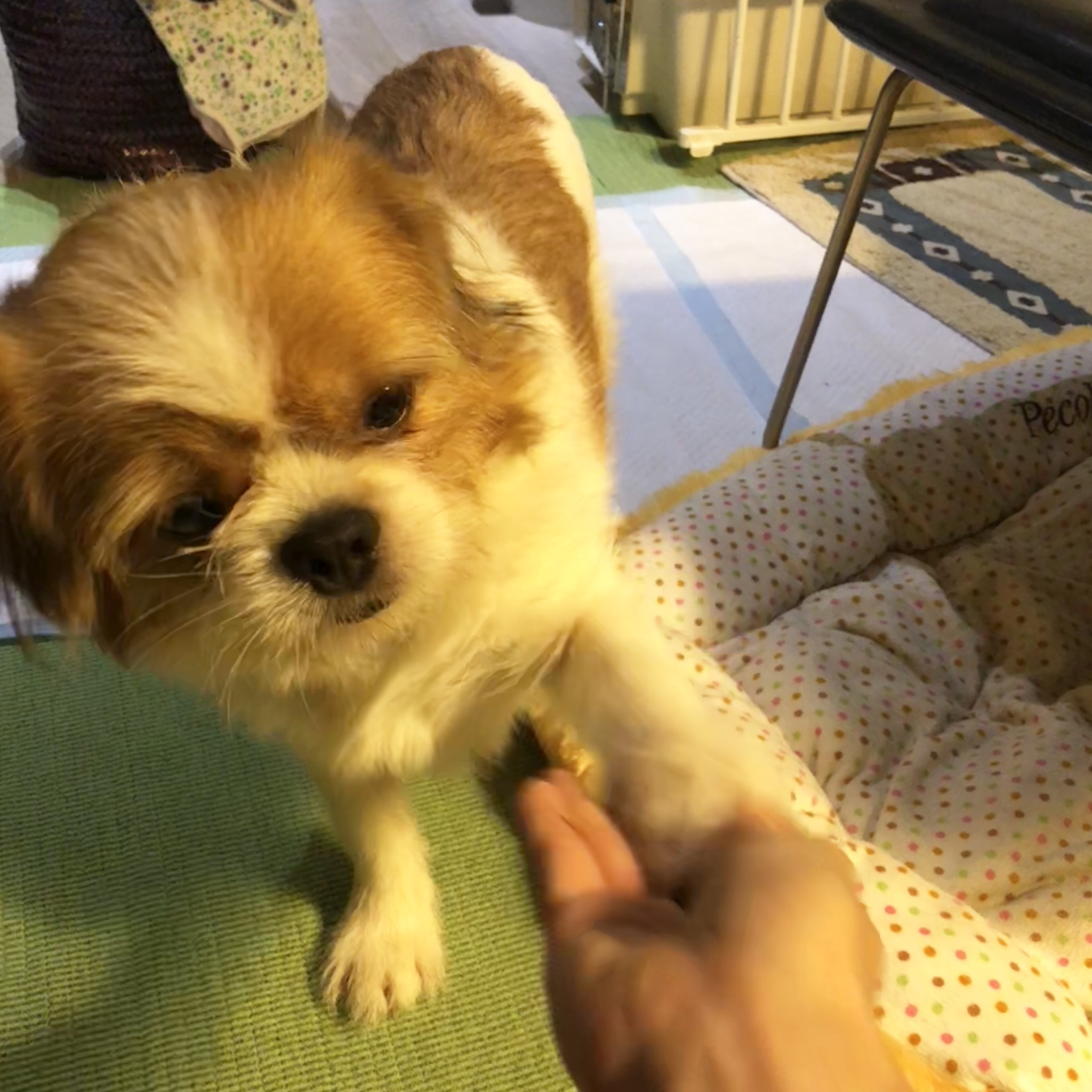 おじちゃんの靴下を、そっと、 さらっていったモーイくん。 お宝にするのか? おじちゃんには、 一日くらいなら、貸してやってもいいぞ と、声かけられていました(・_・; 今日は、もいくんJr.を、さらっていました。 お宝靴下は、 うんちつけられたら困る と、回収されていました。 つばさくんが得意?な どっちだー? で、遊びました♪ オテ! できる日も近そうです! モーイくん、募集停止となりました! ちょっと先にはなりますが、 トライアル予定です。 家庭というものを知らないモーイくんですが、 とても温かいお気持ちで、 モーイくんを、、といってくださるご家庭が見つかりました。 そういう目をかけてくださる方がいるという事が分かっただけでも、とても嬉しい気持ちになります。 幸せまでもう少し。 応援よろしくお願いいたします! ☆今のところプロフィール☆ 性格:興味はあるけど怖がり 特徴:鮮やかな茶色と白のツートン 行動範囲:2メートル 寝床:かつては岩の上、現在ベッド こだわり:陣地で毒味してから食べる 好きなオヤツ:肉系 日課:人間ウォッチング、安全確認 トイレ:シートはめくる、うんちは隠す 目標:引きこもり解消 みなさんへのメッセージ: ・・・ モーイはAngel's Taleの保護犬です フロム ネイチャー・モーイ★トライアル予定 (仮名・オス・推定4才) 日々の様子 >>>モーイ日記 モーイについて>>>プロフィール PR