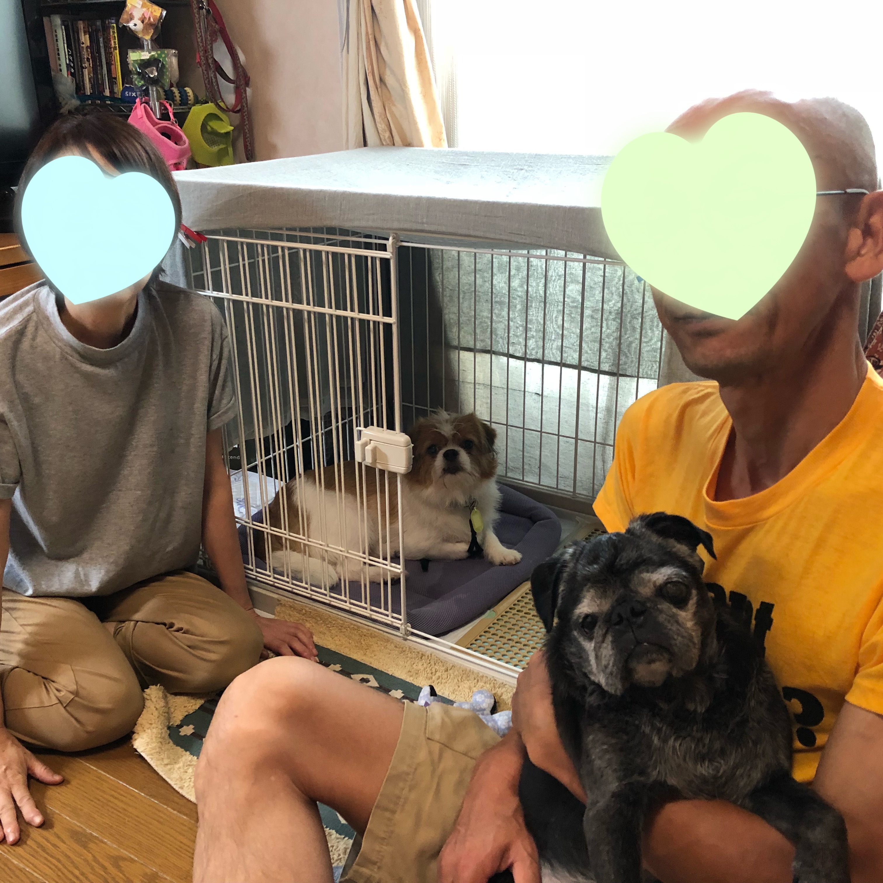 ダンクくん&ちゃん太くん、陽六くんと時を同じくして、モーイくんもトライアルスタートしました! 出発して、すぐ、やはり怖かったようで脱糞してしまい、しかも道中ちょっとチッコもしてしまったようで、汚れながらの到着。 先住犬の〇〇〇くん(パグ先輩と呼ばせてもらいます)が、テクテクと登場し出迎えてくれました♪ さっそく、モーイくんの様子や、写真、動画をいただいています! (抜粋) モーイ君はベッドでしばらく横になっては、時々ハウスから出て、リビングのあちこちをパトロールしています。歴代のワンコ達の気配を感じて確認しているのかもしれませんね。 1時ごろに洗い物をしていたらキッチンの横に来たので、フードを半分あげてみました。最初は一粒づつゆっくり食べて、そのあとは一気に完食しました。今はリビングでゴロゴロ横になっている夫や私や私の足の間にいる(パグ先輩)の近くに偵察に来たりしています。ベッドで横になり目を閉じていても呼吸が速いので、リラックスして眠れるにはまだ少し時間がかかるかな? (パグ先輩)はいつのまにか熟睡していて、モーイ君のペースは和が家の(パグ先輩)にはとても合っていると感じます。 モーイ君の仕草の一つ一つが可愛くて仕方ありません。パピさん、今までモーイ君にたくさんの愛情を注いでいただき、本当にありがとうございました。今日は朝からお疲れになったと思いますので、まずはゆっくりお休み下さいね。 用意してもらったサークルを陣地にして、度々、部屋を偵察できているようです。 思ったより、自然にすごせてます。 追って、いただいた動画もアップしますよ! お見合いに続き、同行してくれたDaiKo3、ありがとうございました! モーイくん、幸せつかんでね! モーイはAngel's Taleの保護犬です フロム ネイチャー・モーイ★トライアル中 (仮名・オス・推定4才) 日々の様子 >>>モーイ日記 モーイについて>>>プロフィール PR