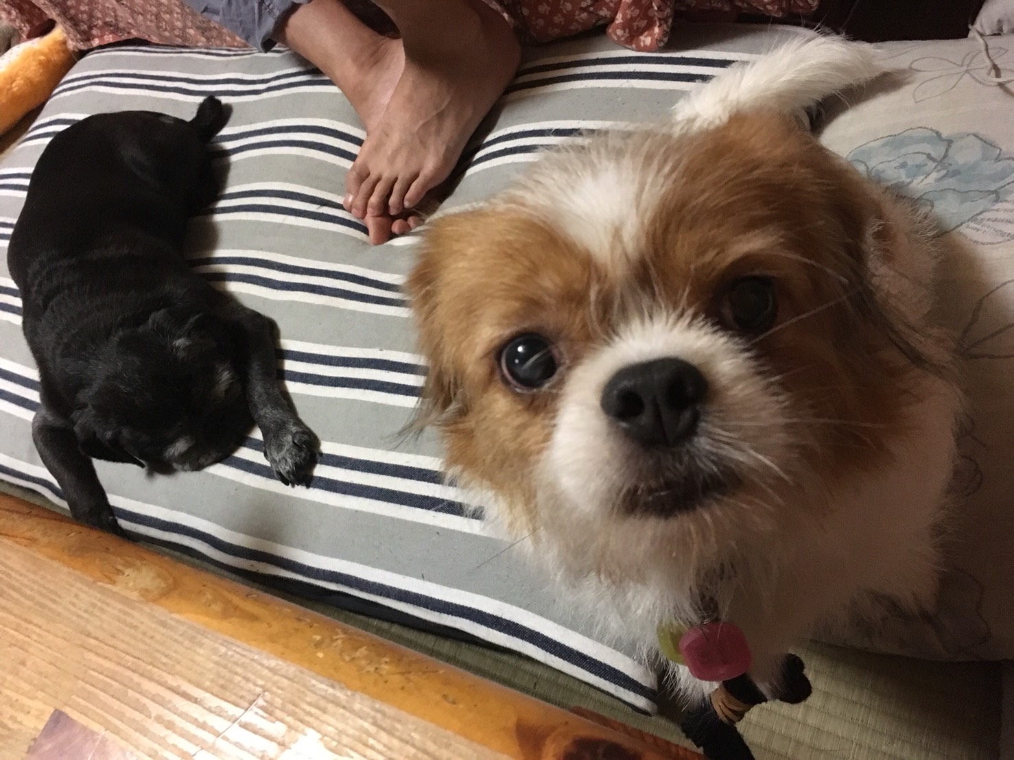 ☆T様からのお便り 今日は私の姉と初対面したモーイくん、最初は少し緊張していましたが、オヤツをもらうとオテを披露したり、おねだりしに近づき手をペロリとしたりしていました。 私がキッチンに立っている時、ふと横に目をやると、近くで座ったり伏せたりしています。その場所は6月に17歳3ヶ月で虹の橋を渡った(キャバリア先輩)がオスワリをして好物の林檎や梨をおねだりした場所でした。毛色やお口まわりがモーイくんとよく似ていたので、とても感慨深い想いがこみ上げてきます。 (パグ先輩)との距離も徐々に縮まってきているように感じます。 寒くなる頃にはお互いの温もりを感じられる間柄になってくれたらなぁ。と思います。 モーイはAngel's Taleの保護犬です フロム ネイチャー・モーイ★トライアル中 (仮名・オス・推定4才) 日々の様子 >>>モーイ日記 モーイについて>>>プロフィール PR