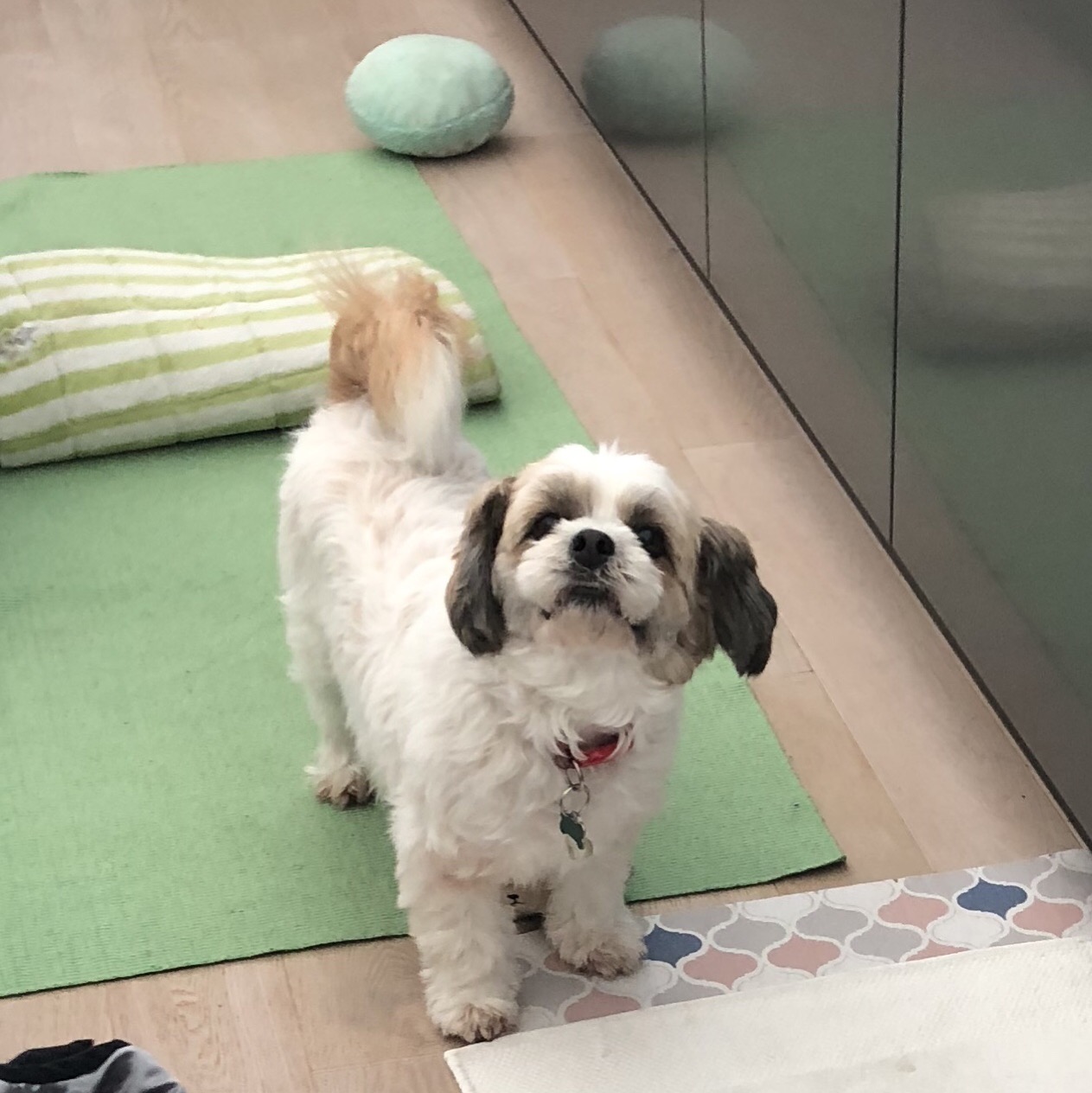 今日も尻尾フリフリ♪ベッキーちゃん! なんと、 見つかりましたよっ!! 行方不明のウエストが。 見よ!このくびれ! そして、もう一つ、、、 未来の家族も見つかりました! トライアルまで、三週間はない ベッキーちゃんとの日々となりました。 現実も?伝えていかねば、、 散歩から帰ると、いつも、 私がうんちを捨てに行っている間に、 リビングから、 ドタドタドタ =3=3=3 バタバタバタ =3=3=3 とすごい音が聞こえるので、 今日は、撮影しようと、潜んでみましたが、、 なんで、見てるの? 見られるとできないじゃない。 と、何故か下歯を見せてフリーズするベッキーちゃん。 ★☆ベッキーここだけプロフィール☆★ 性格:人も動物も、みんながスキスキ♡ 特徴:シーズーが羨む横顔 スピード:つばさくんの4倍 日課:目が合ったら大喜び こだわり:グルメ、バナナが好き お気に入り:ナデナデしてもらうこと 美のお悩み:ウエストが行方不明 欲しいもの:たっくさんの愛 ホホル指数:3 目標:2マカロン 飼い主に向いてない人:線が細くて倒れやすい人 ベッキーはAngel's Taleの保護犬です みんながスキスキ♡ミックスガール★トライアル予定! (仮名・メス・申告4才) 日々の様子 >>>ベッキー日記 ベッキーについて>>>プロフィール PR