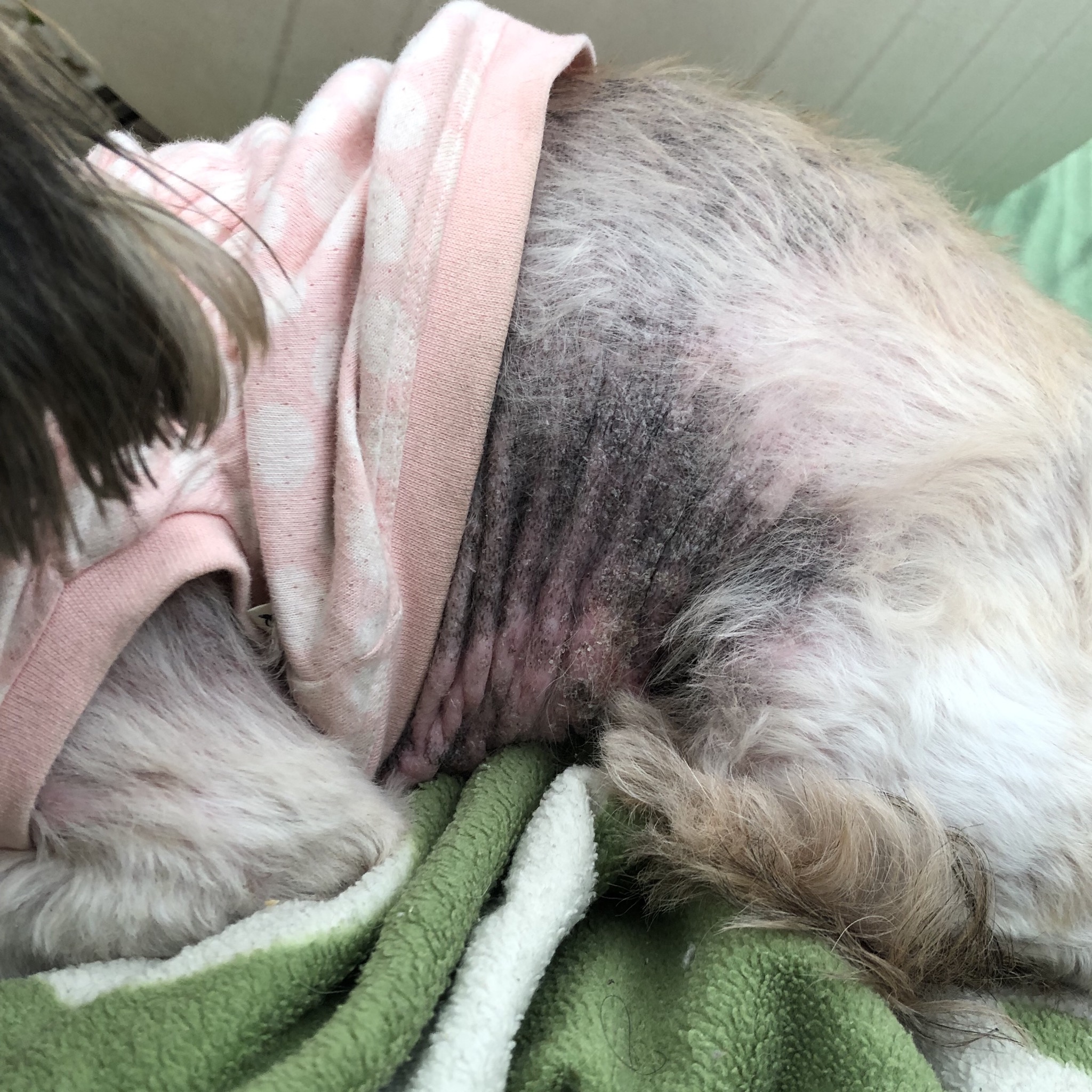 我が家にきて、一ヶ月が経とうとしているハラミちゃん。 皮膚が、どんどん良くなってるー! とは、言えない状況ですが、 フードを変えたことで、じっとりとした脂っぽさは軽減されて、 代わりに、乾燥しているので、 ケア内容を変えてバランスをとっていこうと思っています。 ここ2、3日は、保湿強化するため、 お散歩後に、 モイスチャライズフォームの後にアロビーンコンディショナー(洗い流さないコンディショナー)を重ねてます。 ローションの後にクリームつけるみたいな感じです。 ローション系だと足りないハラミちゃんにも、アロビーンコンディショナーだと、しっとりが続きます♪ 体重は4.85キロ。 なかなか太りません。 ハラミちゃんは、寝言の声がすごくおおきいのですが、 最近、寝言言ってないので、深く眠れているようです♪ 約2週間前 約2週間前 比べると、腹部は若干赤みも減ってるかな〜? 前回のシャンプーから、1週間経っていますが、 ペロペロレベルですんでいます。 臭いレベルは、お腹と脚が3クサ超え。 我が家の一般人に目をつけられているところ(-_-;) 里親会直前まで、しのげるか!? 微妙。 今日は、卒業犬AGGちゃんとNAHHOくんが、 来てくれました! △わかってくれてるクールビューティ AGGちゃん △キュルキュル少なめ。越冬モード?NAHHOくん すっかり、ふわふわ♪ 触り心地もよいおふたり! 可愛いなぁ〜〜❤︎ ハラミちゃんにも、家族の愛情という魔法がかかる日まで、、、 地道に下準備を重ねていきます。 ★ここだけプロフィール★ ポリシー:不満があったらハッキリ伝える ひみつ:時々大きな声で寝言を言う 食事:豪快な食べっぷりと飲みっぷり 引き際:早め 記憶力:高い 好きなフレーズ:わーわーわー 得意な声まね:猫、にわとり 得意な顔まね:研ナオコ 嫌いなこと:目薬 気になること:肉なのか魚なのか 似合う色:さくら色 飼い主になったら出来ること:ギャップ萌え トリビア:実はチョビベロでなくて下唇 テーマ曲:粉雪 ハラミはAngel's Taleの保護犬です ツンデレ系シーズー女子・ハラミ先輩★里親募集中! (仮名・メス・申告11才) 日々の様子 >>>ハラミ日記 ハラミについて>>>プロフィール 保護時の検診>>>代表ブログ 保護時の様子>>>プチステイ先 辿り着けるかわからないけど〜。 PR