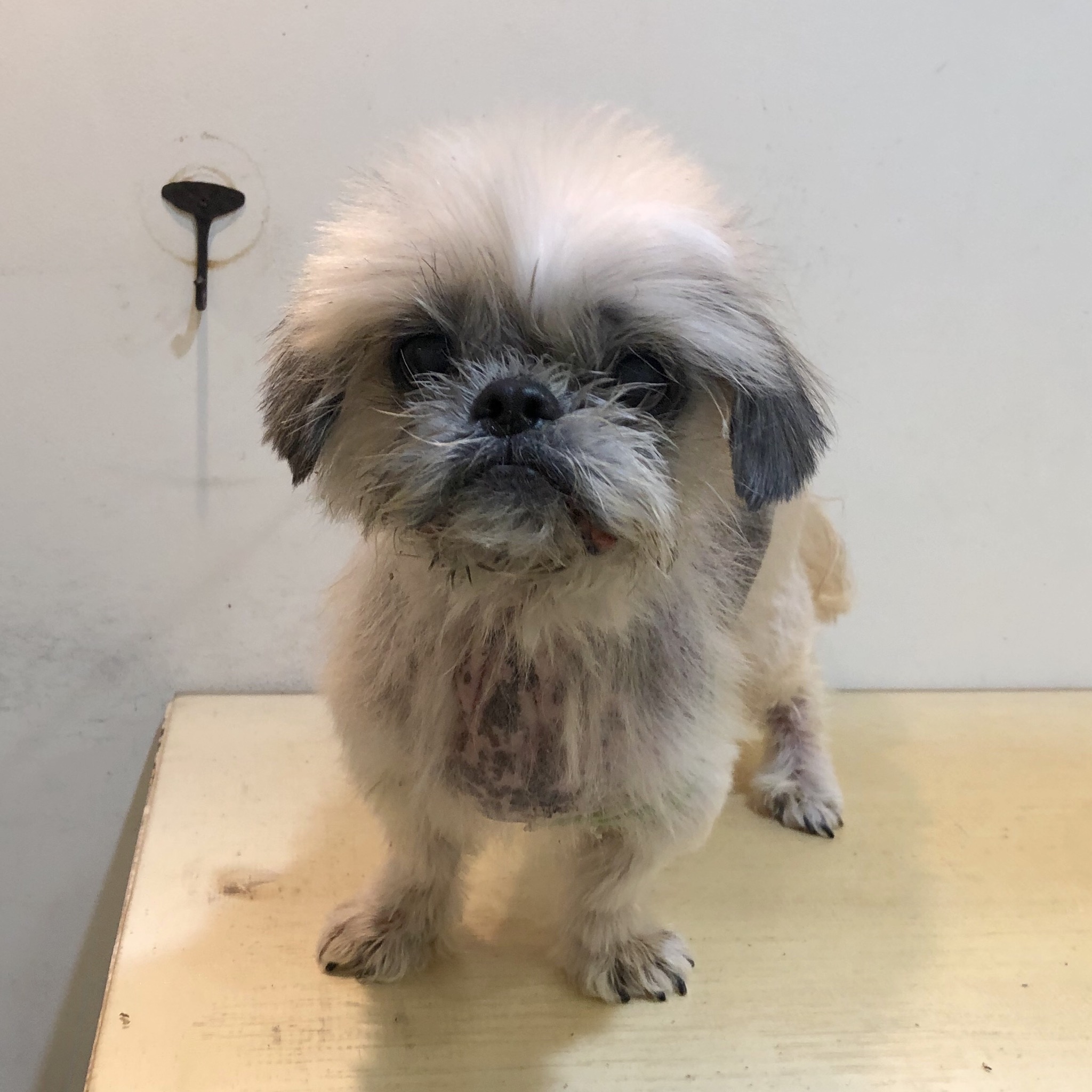 今日も洗われ、お怒りのはらちゃん。 相変わらず、調子いいとは言えない状況ですが、 その中では、まあまあかなぁ。 だいぶ薄毛になりました。 脂臭が強かったはらちゃんの今日のメニュー アニマー湯 マラセブシャンプー アフロートモイスチャライズ 掛け流し アフロート モイスチャライズフォーム (タオルドライ後) マイクロシン Wスキンケア (タオルドライ後赤みのある足の部分に) Agイオンイヤークリーナー どんなに低刺激でも、何らかのシャンプー剤を使うと皮が大きくむけがちなのですが、最近、マラセブも大丈夫です。 お散歩の後、胴体部分を保湿していますが、足の炎症がある部分には、マイクロシン Wスキンケアか、ダーマケアスプレーをプラスするようにしたら、炎症が抑えられています。 1プッシュで、はらちゃん激おこなので、2プッシュ目は、慎重に、タイミングを見計らってスプレーします(^_^;) ふと、足裏を見て、 スッとしたな〜と、思いました。 カサつきはあるけど、普通に肉球型です。 ピンク肌部分の毛は、皮膚の傷み防止に刈らずにいます。 2月頃 ぷっくりまん丸だったね。 むくみは早い時期にだいぶ引いてましたが、それでも丸い感じの肉球でした。 せっかくいい足裏になってきたのですが、 最近、用をすませたら、即、家に帰ります(^_^;) ★ここだけプロフィール★ ポリシー:不満があったらハッキリ伝える 食事:豪快な食べっぷりと飲みっぷり 性格:永遠の思春期 引き際:早め 記憶力:高い 好きなフレーズ:わーわーわー 得意な顔まね:研ナオコ 嫌いなこと:目薬 気になること:肉なのか魚なのか 似合う色:さくら色 飼い主になったら出来ること:ギャップ萌え トリビア:実はチョビベロでなくて下唇 テーマ曲:粉雪 有効成分:ブレない女成分ハラミチン配合 ラインスタンプ「ハラミちゃんのきもち」 リリース! ハラミはAngel's Taleの保護犬です ツンデレ系シーズー女子・ハラミ先輩★里親募集中! (仮名・メス・申告12才) 日々の様子 >>>ハラミ日記 ハラミについて>>>プロフィール 保護時の検診>>>代表ブログ 保護時の様子>>>プチステイ先 PR