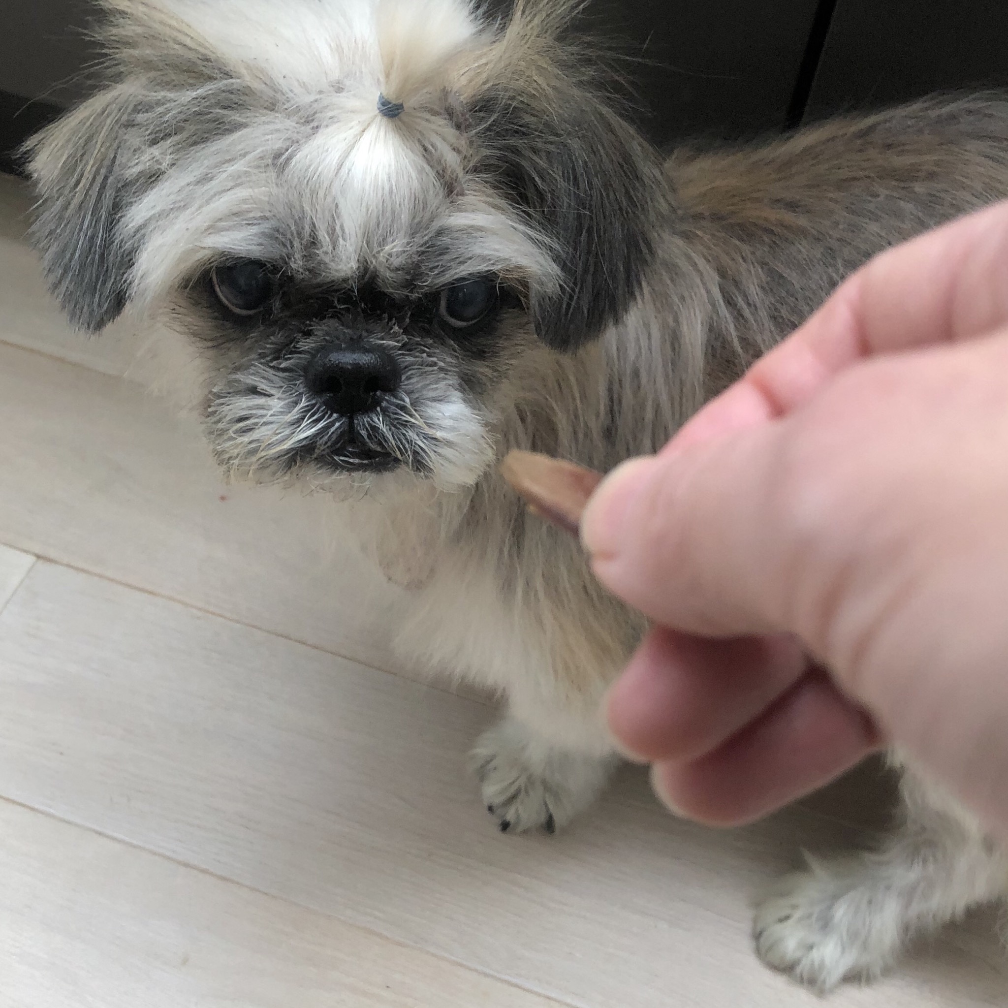 結んでみました! ウミウシ感はんぱない! ちょっと、ちょっと〜 野生動物みたいな目をしないように、 お願いしますよ〜! ヘアスタイル計画。 どんどん伸ばして、丸くしたら可愛いかも。 ちゃんちゃんこも似合うしね〜 ★ここだけプロフィール★ ポリシー:不満があったらハッキリ伝える 食事:豪快な食べっぷりと飲みっぷり 性格:永遠の思春期 引き際:早め 記憶力:高い 好きなフレーズ:わーわーわー 得意な顔まね:研ナオコ 嫌いなこと:目薬 気になること:肉なのか魚なのか 似合う色:さくら色 飼い主になったら出来ること:ギャップ萌え トリビア:実はチョビベロでなくて下唇 テーマ曲:粉雪 有効成分:ブレない女成分ハラミチン配合 ラインスタンプ「ハラミちゃんのきもち」 リリース! ハラミはAngel's Taleの保護犬です ツンデレ系シーズー女子・ハラミ先輩★里親募集中! (仮名・メス・申告12才) 日々の様子 >>>ハラミ日記 ハラミについて>>>プロフィール 保護時の検診>>>代表ブログ PR