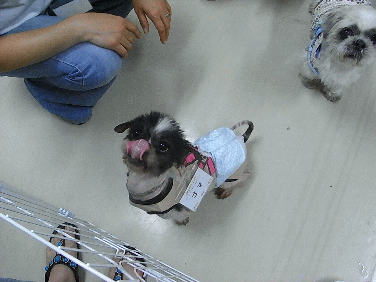 遅くなりましたが、 6月の里親会のご報告! 今回も、華やかな販売スペースがお出迎え ![]() ハナママさんのわんこ服 アモコトラのブース保護犬スペースもわいわい にぎやかまずは新入りさんからご紹介します。 さわぐでもなく、かくれるでもなく、飄々と!度胸のあるエール 快活!でもちょっと緊張ぎみ?キャパ 美形!!パセリ おもしろすぎる~。打てば響く!高速で動き回るごま※画像クリックでパラパラ3コマがお楽しみいただけます では、では、女子~ 元気に動く、動く!フルル※右上に隠れたブルーのしましまに注目!! ハナママのキャミドレスが超お似合い!ともちゃん かわいいね。ちっちゃいこはるつづいて、男子~ コンパクトなこのお顔。大好きです!あらたん(新) ポーカーフェイス&フォトジェニック!いっちゃん ファムより一回り大きいロイ 頼れそうな安心感を醸し出してます おおきめでおっとりかわいいくう※ソファに乗られてたじろぐブルーのしましまにも注目~! いつも笑顔を見せてくれるげんたん(元気)※うしろのクレートの中、注目~!! はだけた浴衣はかりゆしウェアみたい。クールビズ?やまちゃんたくさんの方にお越し頂いたり、里親会に向けて支援品を送って頂きました。 いつもありがとうございます![]() そして、以前、ノフにとご支援いただいたバッチフラワーレメディーで残っていたボトルを、お悩み別にスタッフで分けさせて頂きました。 心の問題にアプローチできる貴重なバッチフラワーレメディー。 保護犬は特に、特殊な環境を経て、心にも問題を抱えている場合がありますので、 きっと役に立つと思います。 ありがとうございました。 かわいいゲストさまいつもみんなにクッキーありがとうございます ![]() ファムも大好きです。 かわいい看板犬?すてきなヘアスタイルですね ![]() オマケ![]() 里親会を終えて。。 おつかれ二人組。いっちゃん&ともちゃん ねむねむ二人組。エール&ファム やっぱり最後はこの方! ※画像クリックでパラパラ3コマがお楽しみいただけます 次回は、6月の里親会~ファム編~をお送りします! PR