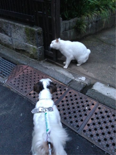 散歩の途中で、白ネコさんに会いました! (ノフがおしりに激突したことある野良猫です。 ファムくんの事も知ってる白ネコさんの記事はこちら→(=^x^=) ) 居るの気づかなかったから、 あっ、と思った時には、 ムトが、至近距離まで顔近づけてました(・_・; 近づきたがるムト! 危ないって! ついに、 出た~!ネコパンチの連打! 焦って写真ぶれました(・_・; いつも堂々とした白ネコさんです。 ムト、猫とか知ってんの? もしや、知らないな。。。 近付いて、臭い嗅いだら危ないんだよ~。 オマケ 犬の性格もそれぞれですねぇ。 同じ白ネコさんでも、 ノフは、気付かず激突するも気付かず(・_・; ファムくんは、平和の為に素通り。 ムトは、ぐいぐい迫って猫パンチ。 あなたの犬はどれですか? ☆☆猫パンチ注意!ムト★里親様募集中!☆☆ ![]() ム ト はAngel's Taleの保護犬です★ (仮名・オス・推定5才) ムトと一緒に楽しい暮らし、始めませんか? ムトの日々の様子はこちらから>>> ムト日記 ムトのプロフィールはこちら>>>保護犬プロフィール ★ムトの動画シリーズ★ ムトの一日 ムトのおさんぽ ムトのおやすみタイム もうすぐ、憧れのシニア限定里親会!! ガウガウし放題里親会、、とか、どこかにないですかぁ~? (ぼやき) PR