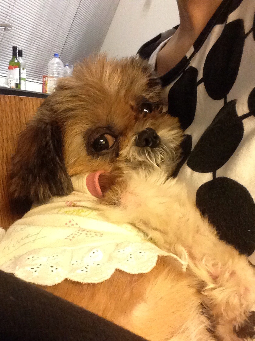 もうダメ、おしまい。 と、 オヤツTIMEを終えて、洗い物を始めてしまったおじちゃん うなだれるしかないアグちゃんです。 もうないんだって、 ダメなんだって、、、 それでも、おじちゃんが動くと、 もしかしたら… と、目で追ってしまうアグちゃんなのでした。 U・x・U オマケ 今日はカフェデビューを果たしたアグちゃん♪ よい子に出来ました♪ 先輩にも会えました! その様子は後日〜♪ アグはAngel's Taleの保護犬です ラブリーな亀の子タワシ♥︎トライアル決定! (仮名・メス・推定5才) 日々の様子 >>>アグ日記 アグのこと>>>プロフィール マキちゃん、マークくんの2人のように、 ピリッとする時はあるのか? アグちゃん!? PR