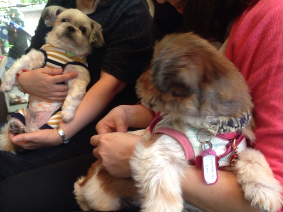 先日、Yukonさんに誘われて、 アグちゃんとカフェに行きました。 そうしたら、卒業犬アロハくんと、 ママのししさんが! オフ会の相談かなぁ〜なんて思っていたので、 あれ?ししさんがオフ会で何かするのかな?それを私がどっかにお願いしないといけないとか?と、 と頭の中を考えが駆け巡っていたところ、チャオお姉ちゃん登場! 一瞬、理解できなかったので、、、 反応鈍くてスミマセン;^_^A (ししさんのブログで見てね→★) サプライズでした☆ 卒業犬トコアくん、卒業犬アロハくん 久しぶりのトコアくんは、ヘアースタイルも変わって、すっかりK家の愛されわんこでした♥︎ でも、相変わらず若々しくてかわいいルックス!! 近所でも人気者だっただけあって、 終始みんなにシッポフリフリ♪ こんな素敵なわんこケーキも用意してくれました! さすが、イロイロ知ってるししさん、 アンド、メチャクチャ気が利く、 我らがイベント統括Yukonさん。 ししさんのブログを通して、 チャオお姉ちゃんが、エンジェルズ・テールを知り、トコアくんと出会いました。 一人一人の想い、行動が、 命をつなぐことになりました。 素晴らしいですね! トコアくんと撮ってもらいました♪ トコアくん、かわいい〜 ふわふわ♪ Yukonさん撮影ありがとう! アグちゃんはビビりんちょなので、 カフェに連れてったこともなかったのですが、 おりこうにできました。 ついつい、心配なあまり勝手に限界を決めてしまいがちですが、 案外、大丈夫なのね。 アロハくんの表情ったら(^з^) チャオお姉ちゃんに、心配症?と聞かれてしまいました(^^;; そんなタイプじゃないんですが〜、 やっぱり預かってるからかな? 本当の飼い主さんとは、 思う存分、楽しんで生きて欲しい! と思ったのでした。 チャオお姉ちゃん&トコアくん ししさん&アロハくん Yukonさん ありがとうございました〜♥︎ 永遠のライバル? マキちゃん&マークくんも里親募集中! PR