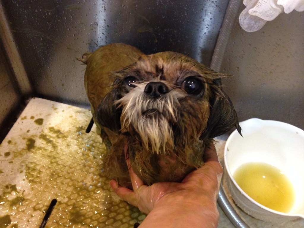アーユルヴェーダのハーブパック(メインハーブのひとつはニーム)しました♪ 皮膚ケア用です。 ちょっと待ちの間、 ゴニョゴニョ、文句を言うアグちゃんです。 もう、出〜た〜いぃ〜 と、ゴニョゴニョ言います。 (いつもより目が開いてる…汗) 病院からもらってるクレンジングシャンプーの後、ハーブパック。 よく洗い流してから、ニームのシャンプーで洗いました。 タオルドライ後、セラミドスプレーして、ニームアロマクリームを塗って、ドライ。 ニームアロマクリームには、スーパーヒアルロン酸やアボガドオイルも入ってます…贅沢〜(゚o゚;; ニームづくし!! いい匂いでフワフワの仕上がりになりました♪ トライアルまで、二週間くらい。 どれだけ良くなれるかなぁ〜? シャンプーの間隔は、少しずつ、長くなってきています☆ アグはAngel's Taleの保護犬です ラブリーな亀の子タワシ♥︎トライアル決定! (仮名・メス・推定5才) 日々の様子 >>>アグ日記 アグのこと>>>プロフィール マキちゃんVSマークくん PR