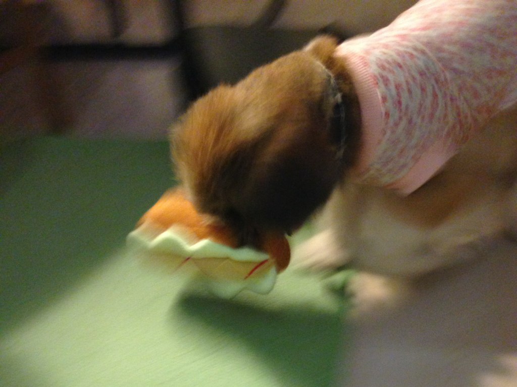 すっかり、ヒヨコちゃんが手放せないアグちゃん