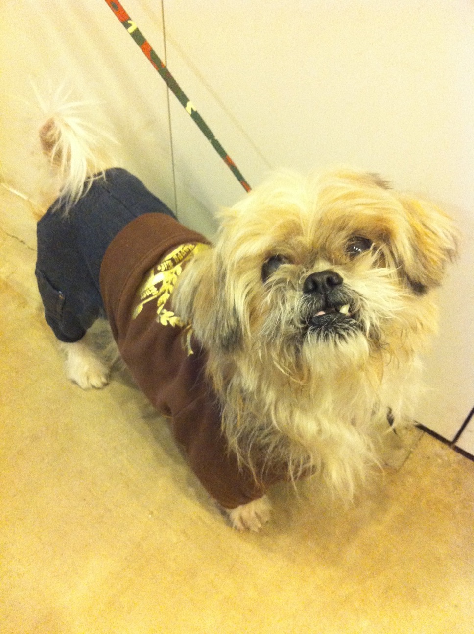 先日の里親会で、可愛い洋服、ツーピースにに見えるワンピースを頂きました