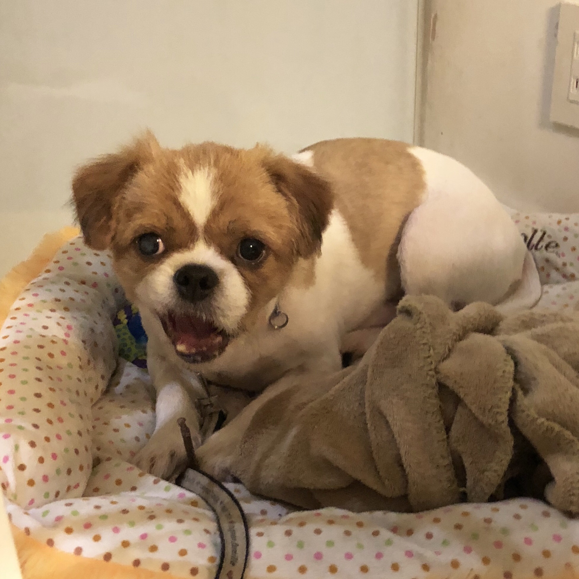 Solくん改め、そるのすけくんは、 家族と、とーっても幸せそう♪ 我が家の引きこもりBOYにも、そんな風に、人と家族になれる日が、いつくるかなぁ? どんどん遠のくごはん。 朝見たら、 ほぅ〜、オモチャで遊んでみた⁉︎ ハミガキガム食べてると、表情でるね! 結構、気持ち良さげに寝てる。 なかなかクレートに入ってくれない。 入ったら出ない。 これでも、散歩の練習。 外を見てみる。 いつ外に行けるかなぁ? ☆今のところプロフィール☆ 性格:興味はあるけど怖がり 特徴:鮮やかな茶色と白のツートン 行動範囲:2メートル 寝床:かつては岩の上、現在ベッド こだわり:陣地で毒味してから食べる 好きなオヤツ:肉系 日課:人間ウォッチング、安全確認 トイレ:シートはめくる、うんちは隠す 目標:引きこもり解消 みなさんへのメッセージ: ・・・ モーイはAngel's Taleの保護犬です フロム ネイチャー・モーイ★里親募集準備中 (仮名・オス・推定4才) 日々の様子 >>>モーイ日記 モーイについて>>>プロフィール