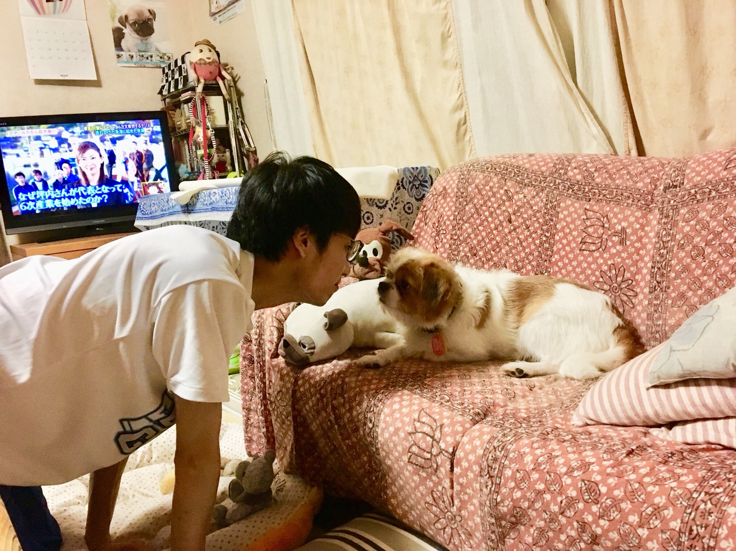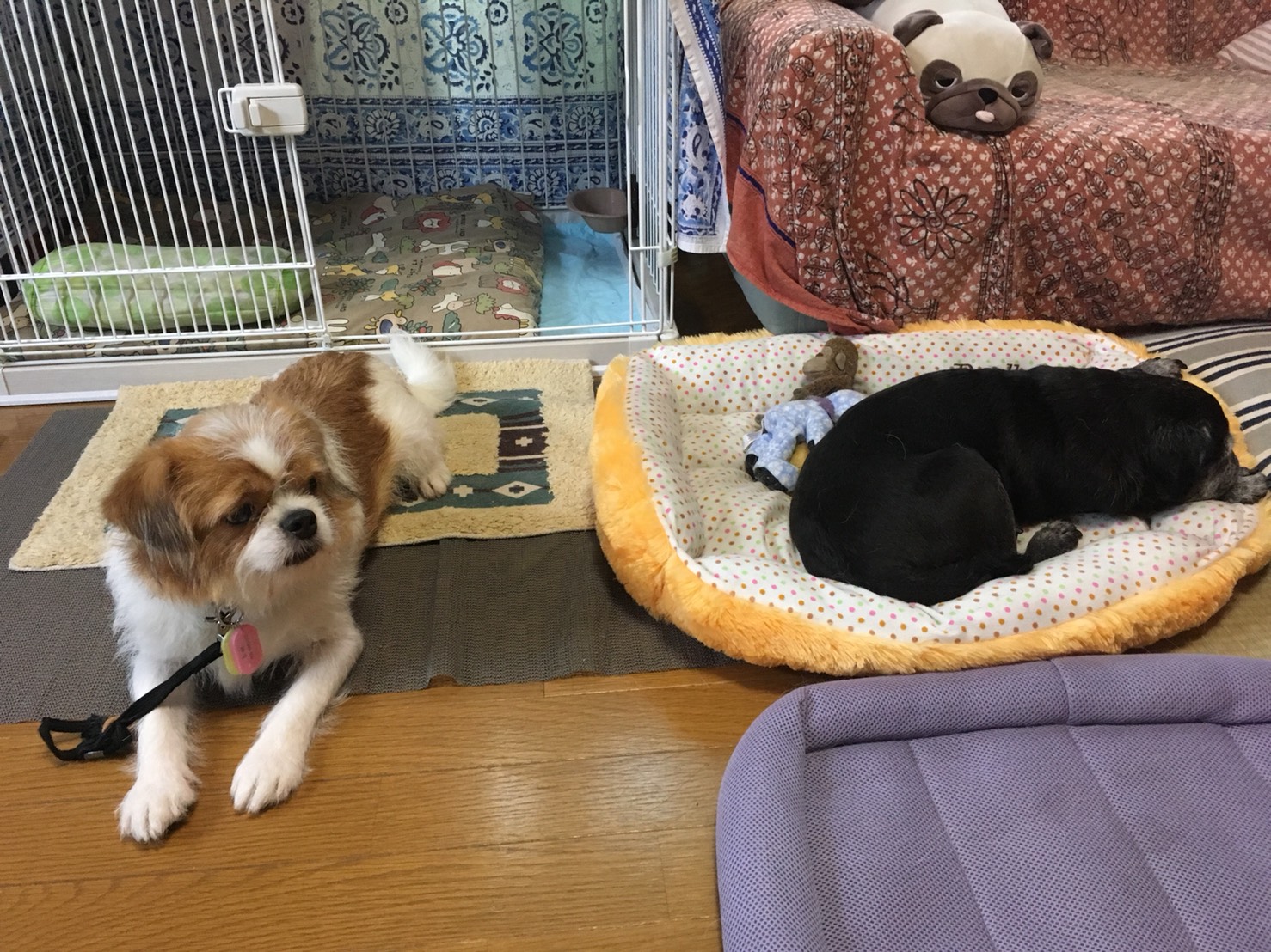 ☆T様からのお便り 夕食を食べている横で、童心に返って、もいくまくんと遊ぶモーイくん、小さな「ガルル…」も聞こえ、無邪気に遊ぶ姿はまさに仔犬のよう♡4歳の今も童顔のモーイくんの愛くるしい仔犬の頃が目に浮かぶようでした。 そして今日は息子とも対面しました。 まずは神妙なお顔で観察をした後、オテやオスワリからのオヤツのおねだりと一通りの技を披露してくれました。これでトライアル期間中ギリギリで家族全員をモーイくんに紹介することが出来ました。 (パグ先輩)を見る眼差しもなんだか余裕の表情のモーイくんです。 ϵ( 'Θ' )϶ パピコメ ϵ( 'Θ' )϶ 遠くに暮らす家族も、モーイくんに逢いに来てくれました! みんなが楽しみにしてくれて嬉しいね! モーイはAngel's Taleの保護犬です フロム ネイチャー・モーイ★トライアル中 (仮名・オス・推定4才) 日々の様子 >>>モーイ日記 モーイについて>>>プロフィール