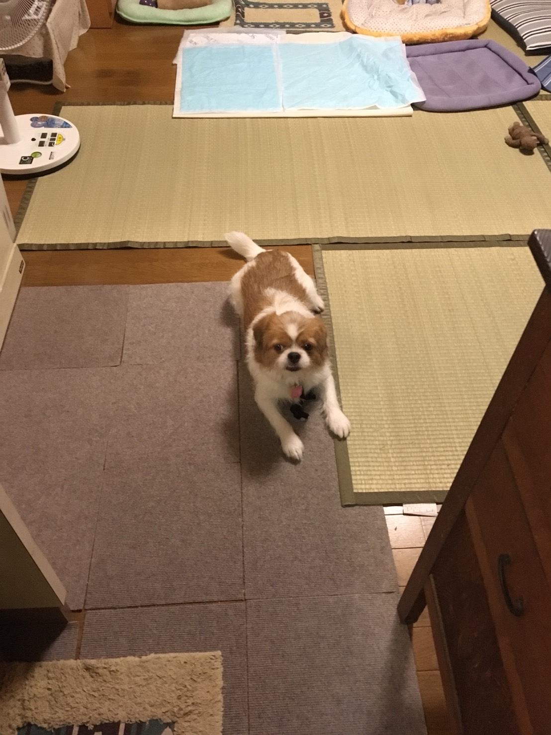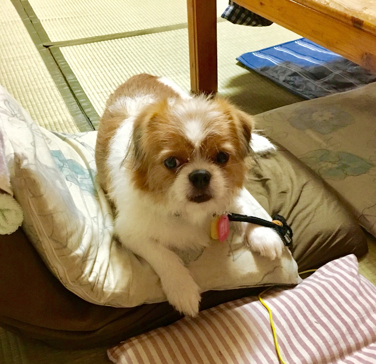 ☆T様からのお便り 今日は私の姉と初対面したモーイくん、最初は少し緊張していましたが、オヤツをもらうとオテを披露したり、おねだりしに近づき手をペロリとしたりしていました。 私がキッチンに立っている時、ふと横に目をやると、近くで座ったり伏せたりしています。その場所は6月に17歳3ヶ月で虹の橋を渡った(キャバリア先輩)がオスワリをして好物の林檎や梨をおねだりした場所でした。毛色やお口まわりがモーイくんとよく似ていたので、とても感慨深い想いがこみ上げてきます。 (パグ先輩)との距離も徐々に縮まってきているように感じます。 寒くなる頃にはお互いの温もりを感じられる間柄になってくれたらなぁ。と思います。 モーイはAngel's Taleの保護犬です フロム ネイチャー・モーイ★トライアル中 (仮名・オス・推定4才) 日々の様子 >>>モーイ日記 モーイについて>>>プロフィール