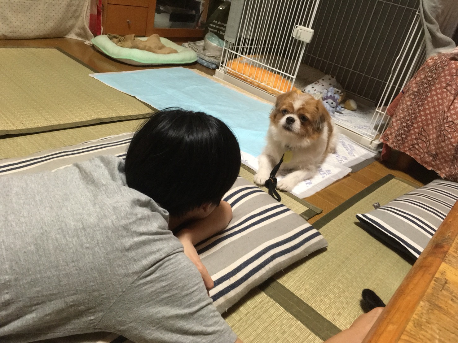 ☆T様からのお便り 夕方4時に残り半分のフードを食べました。時々ケージの前で伸びて寛いだり、都内から帰省した娘とお見合い以来の再会を果たしたり、少しずつリラックスしてくれているようでした。 8時頃におやつの催促? マッチの先くらいにしたヒマチーを少量づつあげると、キテ・オスワリ・オテを披露してくれました。 その後しばらくは「パトロールしてケージに戻る」を繰り返しながら、9:30頃、腰を下ろしてのポーズでケージ前のシートでちゃんとオシッコが出来ました。 10時頃から落ち着いて眠り始め、トライアル初日が無事終了しそうですので、ご安心下さいね。 モーイはAngel's Taleの保護犬です フロム ネイチャー・モーイ★トライアル中 (仮名・オス・推定4才) 日々の様子 >>>モーイ日記 モーイについて>>>プロフィール PR