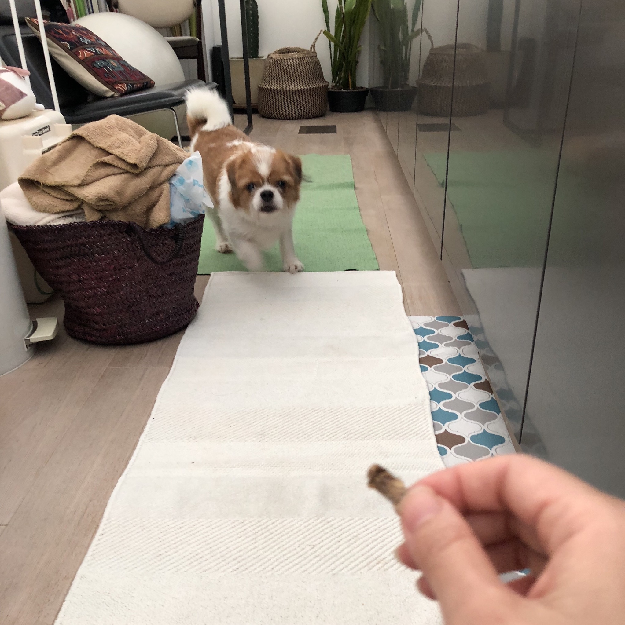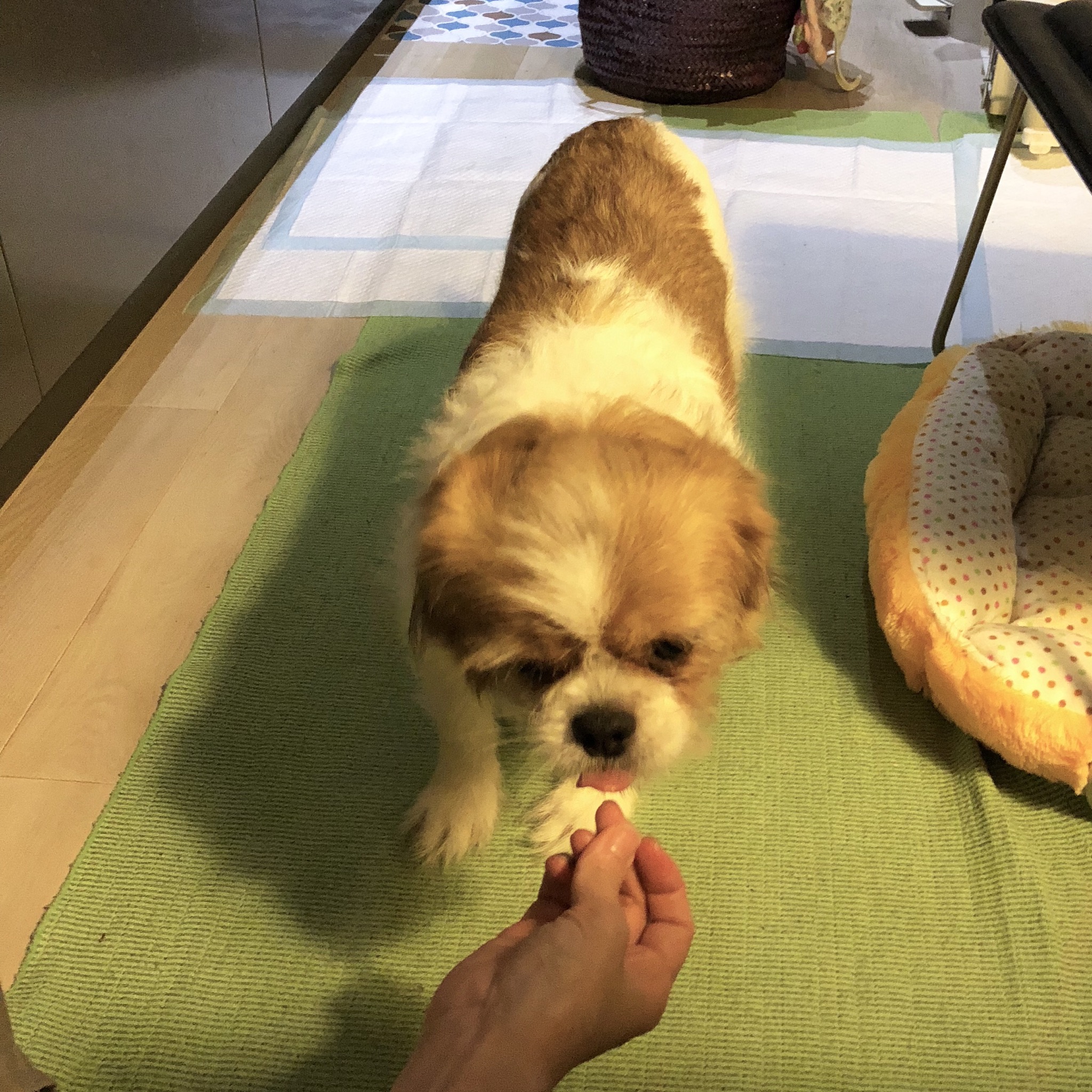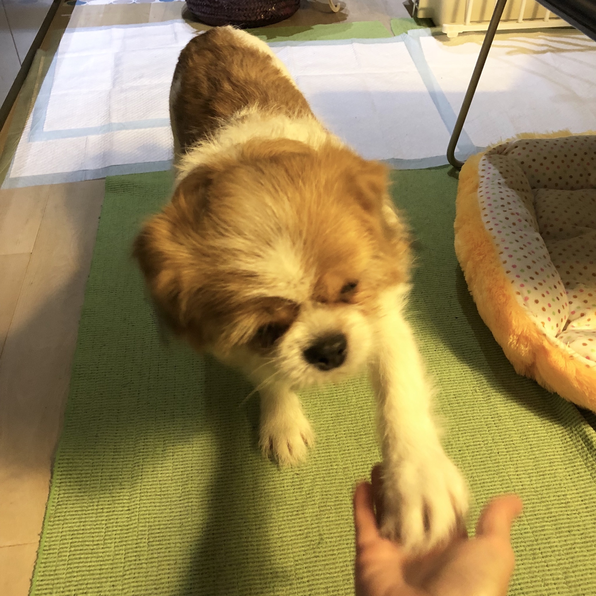 練習がおわり休息中♪ おくち周りが、雪見だいふくみたいで可愛いよねぇ。 今日も、新たなお題達成のため、地味に練習していました。 もいくんから、練習しようよ!といってきます。 もいくんJr.と。 ★改訂版!今のところプロフィール★ 性格:興味はあるけど怖がり 特徴:鮮やかな茶色と白のツートン 行動範囲:4メートル 寝床:かつては岩の上、現在ベッド こだわり:陣地で毒味してから食べる 好きなオヤツ:肉系 日課:オヤツの出待ち トイレ:腰を下ろす派 目標:脱・脱糞 みなさんへのメッセージ: オヤツくれますか? モーイはAngel's Taleの保護犬です フロム ネイチャー・モーイ★トライアル予定 (仮名・オス・推定4才) 日々の様子 >>>モーイ日記 モーイについて>>>プロフィール