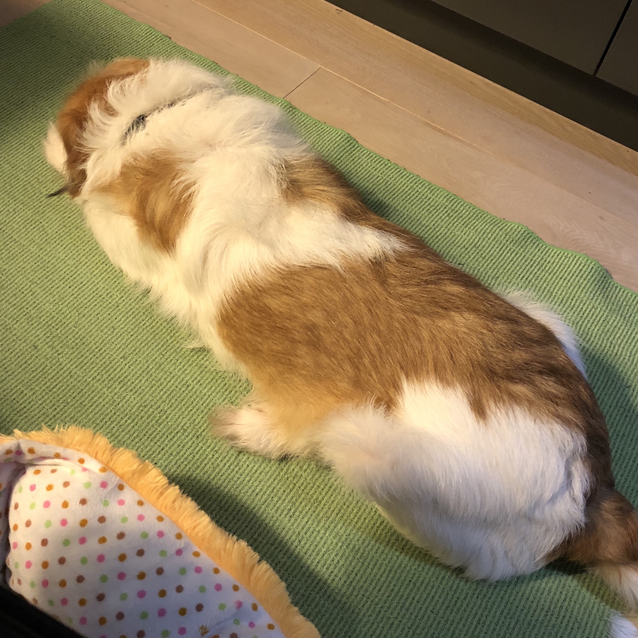 オテ! オスワリ! キテ! フセ! のみ込み早いモーイくん。 四つのコンビネーションを、ヤル気マンマンでこなします! フセ!からの、オスワリ!は、なかなかできなかったりするのですが、 すぐできました。 寝ているモーイくん なんてことない写真のようですが、 うしろを取られないようにしてるモーイくんなので、こんな直近で、後ろ姿を見られるなんて、 びっくりしました。 一緒に何かに取り組むことで、 信頼関係ができたり、 何かを達成することで、 自信が持てて、落ち着いてすごせたり。 いい効果がでているようです。 ★改訂版!今のところプロフィール★ 性格:興味はあるけど怖がり 特徴:鮮やかな茶色と白のツートン 行動範囲:4メートル 寝床:かつては岩の上、現在ベッド こだわり:陣地で毒味してから食べる 好きなオヤツ:肉系 日課:オヤツの出待ち トイレ:腰を下ろす派 目標:脱・脱糞 みなさんへのメッセージ: オヤツくれますか? モーイはAngel's Taleの保護犬です フロム ネイチャー・モーイ★トライアル予定 (仮名・オス・推定4才) 日々の様子 >>>モーイ日記 モーイについて>>>プロフィール
