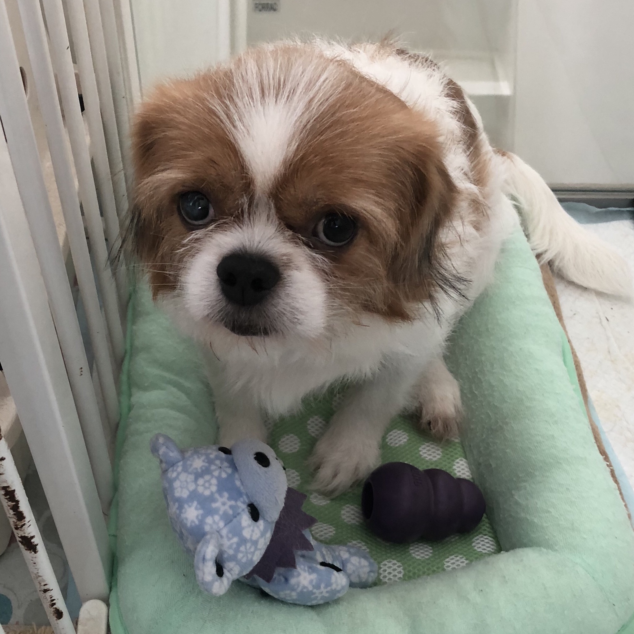 腰は下ろす派 むしろ、 腰は下ろしすぎる派。 あ、おしっこ? あれ? 寝てる?、、ん? と迷うことあるくらい。 ほぼ、オスワリ!できるように。 まだ誘導は必要なのと、 座るときに、三歩くらいの助走が必要みたいで、 座った位置が、若干遠目になります、、(・_・; でも、オテ!というと、 私の手に届くところまで戻ってきますよ♪ 戻ってもらう為に、キテ!も練習しはじめました。 なんで、最近、何かしないとオヤツもらえないんだろぉ? と、思ってるかもしれないモーイくんです。 でも、何かしてるおかげか、 なかなか進展しなかった 「立ってる私からオヤツをもらう」 ことも、できるようになってきました。 犬たちだけで暮らしていたモーイくんは、 人に触られることが怖いです。 でも、 そのうち、触られる事も、大丈夫認定してくれるといいなぁ。 ★改訂版!今のところプロフィール★ 性格:興味はあるけど怖がり 特徴:鮮やかな茶色と白のツートン 行動範囲:4メートル 寝床:かつては岩の上、現在ベッド こだわり:陣地で毒味してから食べる 好きなオヤツ:肉系 日課:オヤツの出待ち トイレ:腰を下ろす派 目標:脱・脱糞 みなさんへのメッセージ: オヤツくれますか? モーイはAngel's Taleの保護犬です フロム ネイチャー・モーイ★トライアル予定 (仮名・オス・推定4才) 日々の様子 >>>モーイ日記 モーイについて>>>プロフィール |
