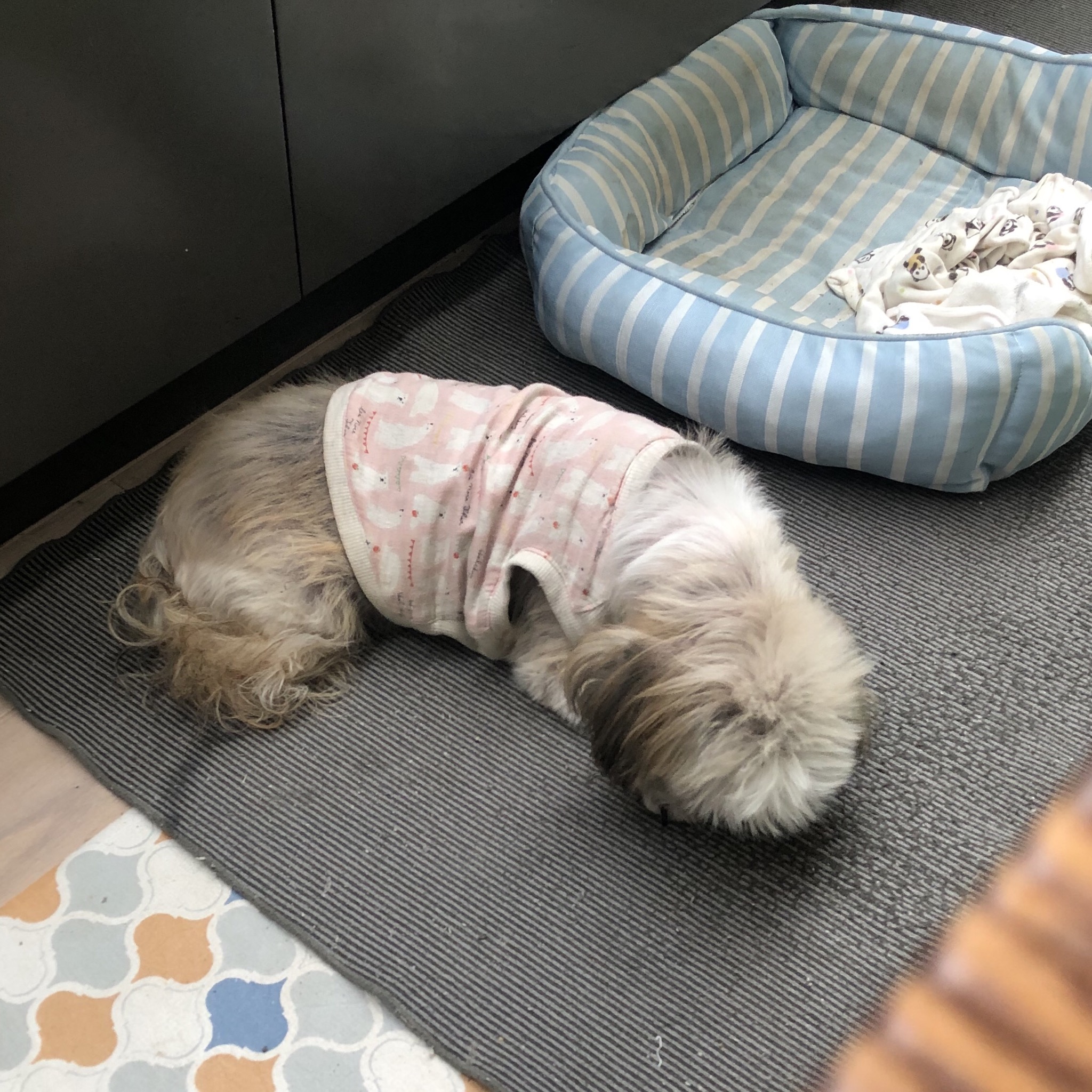またまた、お久しぶりです! 台風が来ようが、何が来ようが、、、 日常を貫きとおす、一切のブレのないハラミちゃんです。 ハ)なんか、早く帰ってきたわね! ハ)え?散歩? 散歩!散歩!って、、うるさいな〜、 行かないわよ、今、そんな気分じゃないんだから! ハ)寝たふりしとこ、、 ハ)ちょっとぉ〜、まだ、言ってる! うざいわ〜 ストレスたまって、お手手なめなめハラミちゃん。 一瞬、どっちが前か後ろか、わからない。 最近、オープンにしたクレートも寝床の一つになりました! アニマルコミュニケーションしてもらったハラミちゃん。 「私のことなんか、誰もわかってくれない。 今まで私がどんな目に遭って来たか、誰もわかってくれない。 どうせ可愛がってなんかもらえない。可愛がってくれる飼い主に会えるとも思っていない。 どうせ私なんか嫌われ者、厄介者なんだ。どうせ私なんか、、、」 と、思っているそうです。 私が見つめただけで、唸る。 そばにいるだけで、うざい!と、怒ってお口が出ることも。 可愛い!可愛い!との声掛けも、お怒りのハラミちゃん。 みんな、ハラミちゃんは、可愛いね、頑張ってるね、よくなってるね、よくなるといいね、と、 心配したり、応援してくれてるのにね〜 いつか、 皮膚の悪さからも、精神的な鎧からも、 ブレイクスルーできる時が来ると信じています。 愛情深く見守ってくれる家族ができたら、、、 いつか変われる!そう、信じています。 ★ここだけプロフィール★ ポリシー:不満があったらハッキリ伝える 食事:豪快な食べっぷりと飲みっぷり 性格:永遠の思春期 引き際:早め 記憶力:高い 好きなフレーズ:わーわーわー 得意な顔まね:研ナオコ 嫌いなこと:目薬 気になること:肉なのか魚なのか 似合う色:さくら色 飼い主になったら出来ること:ギャップ萌え トリビア:実はチョビベロでなくて下唇 テーマ曲:粉雪 有効成分:ブレない女成分ハラミチン配合 ラインスタンプ「ハラミちゃんのきもち」 リリース! ハラミはAngel's Taleの保護犬です ツンデレ系シーズー女子・ハラミ先輩★里親募集中! (仮名・メス・申告12才) 日々の様子 >>>ハラミ日記 ハラミについて>>>プロフィール 保護時の検診>>>代表ブログ 保護時の様子>>>プチステイ先