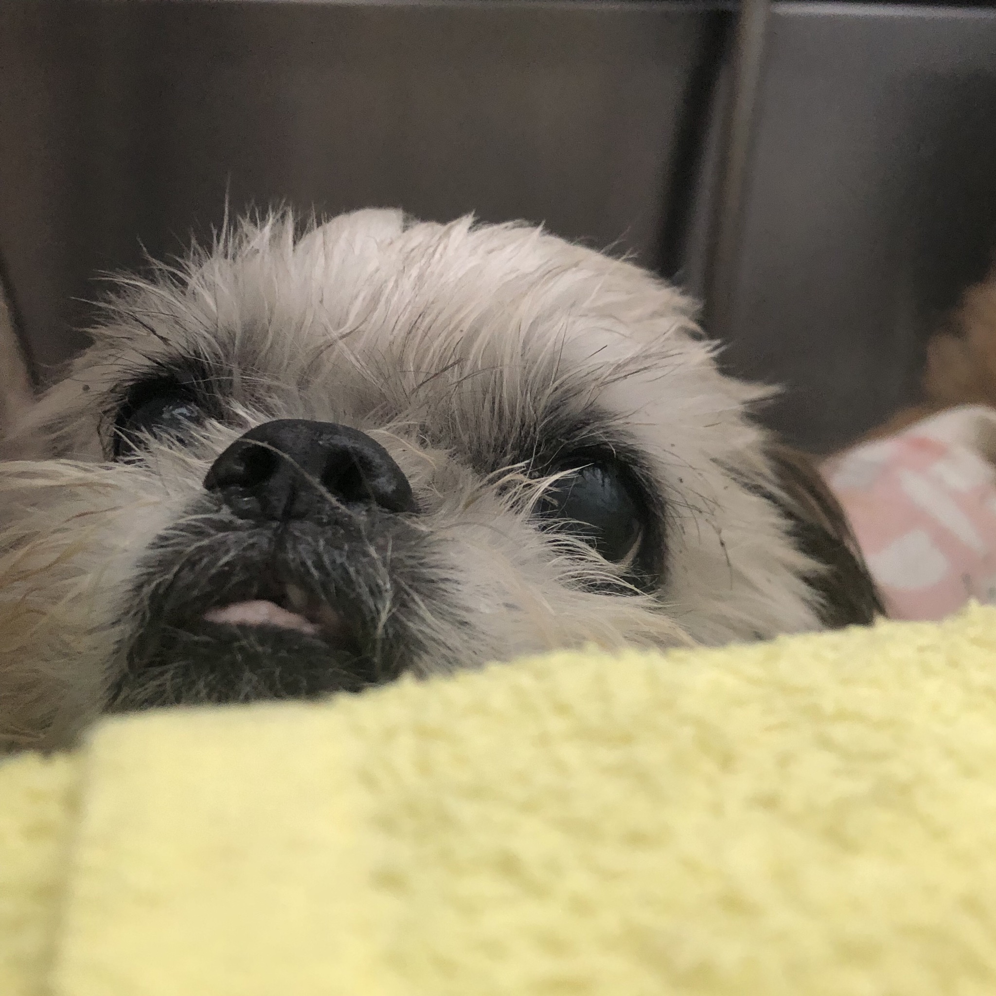 狂犬病予防接種で病院にいきました! 病院と察して、ドアに向かって、 アタシ、帰る! としばらく訴えていたので、オヤツで、ご機嫌とりです。 診察台の上では、お利口さん! 体重は、400gアップの5.2㎏。 めざせ、6㎏! ハラミちゃんは、耳先が脂っぽいので、耳の毛を短くしているのですが、もっと伸ばして、シー面にしていきたいとイメージしてみました。 まずはココを目指そう♪ ★ここだけプロフィール★ ポリシー:不満があったらハッキリ伝える ひみつ:時々大きな声で寝言を言う 食事:豪快な食べっぷりと飲みっぷり 引き際:早め 記憶力:高い 好きなフレーズ:わーわーわー 得意な声まね:猫、にわとり 得意な顔まね:研ナオコ 嫌いなこと:目薬 気になること:肉なのか魚なのか 似合う色:さくら色 飼い主になったら出来ること:ギャップ萌え トリビア:実はチョビベロでなくて下唇 テーマ曲:粉雪 有効成分:ブレない女成分ハラミチン配合 ラインスタンプ「ハラミちゃんのきもち」 リリース! ハラミはAngel's Taleの保護犬です ツンデレ系シーズー女子・ハラミ先輩★里親募集中! (仮名・メス・申告12才) 日々の様子 >>>ハラミ日記 ハラミについて>>>プロフィール 保護時の検診>>>代表ブログ 保護時の様子>>>プチステイ先