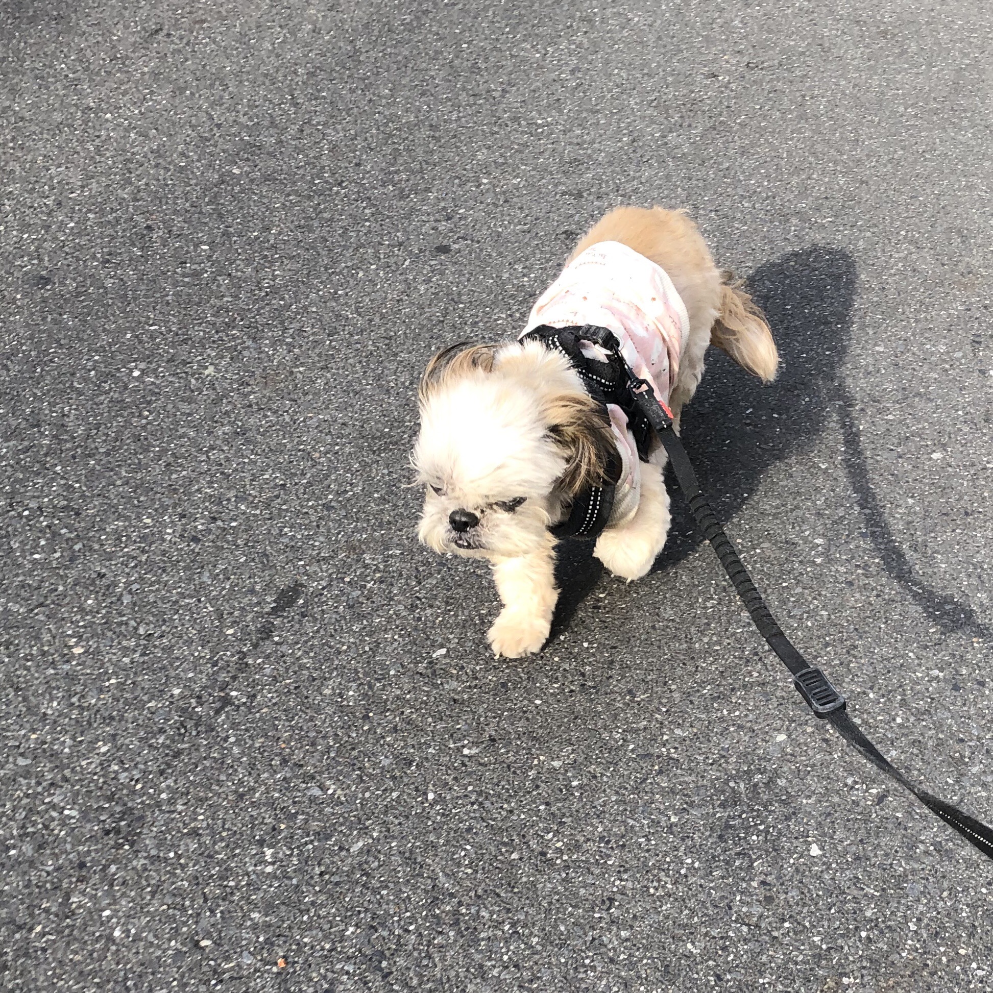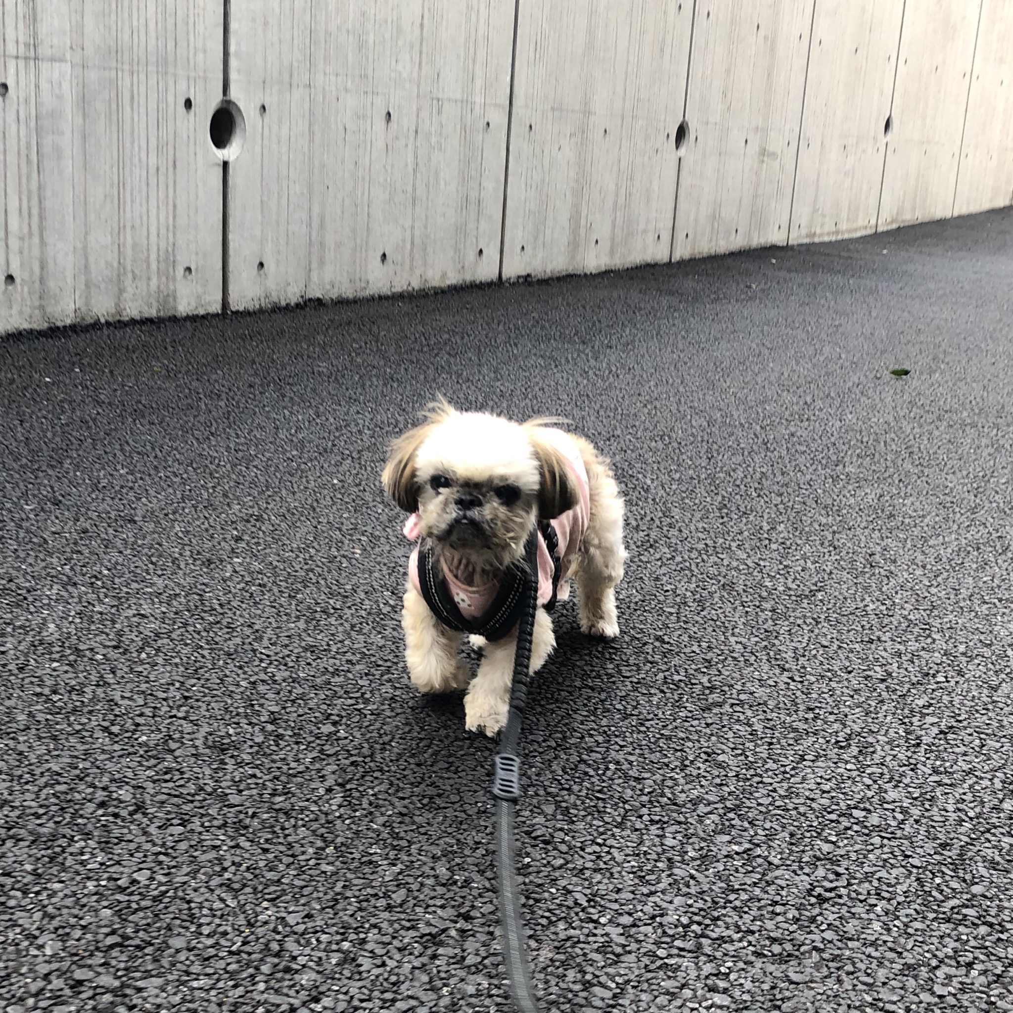 我が家の基準となるお散歩コースを、 ハラミちゃんは、初めて周ることができました! 体力的には、これまでも行けたはずですが、 肉球がついていけないのと、 痒くて止まったりで、 いつもは、電柱4、5本分くらい行っては、引き返しています。 天気もよくて、調子よく進んでいたので、 トライしてみました! 途中、 何?この知らない道⁈ と立ち止まりかけたのですが、 何とか進み、一周達成! これまでの預かりっコのタイムは、 4分(←ソルくん) 〜 20分(←ツバサくん)。 ハラミちゃんは、15分でした! 家のそばまで来たところで、ちょっと後ろ足がヨロヨロになってしまいましたが、 肉球の負傷は無し! また、調子が良さそうな時はトライしてみます♪ ★ここだけプロフィール★ ポリシー:不満があったらハッキリ伝える ひみつ:時々大きな声で寝言を言う 食事:豪快な食べっぷりと飲みっぷり 引き際:早め 記憶力:高い 好きなフレーズ:わーわーわー 得意な声まね:猫、にわとり 得意な顔まね:研ナオコ 嫌いなこと:目薬 気になること:肉なのか魚なのか 似合う色:さくら色 飼い主になったら出来ること:ギャップ萌え トリビア:実はチョビベロでなくて下唇 テーマ曲:粉雪 有効成分:ブレない女成分ハラミチン配合 ハラミはAngel's Taleの保護犬です ツンデレ系シーズー女子・ハラミ先輩★里親募集中! (仮名・メス・申告11才) 日々の様子 >>>ハラミ日記 ハラミについて>>>プロフィール 保護時の検診>>>代表ブログ 保護時の様子>>>プチステイ先
