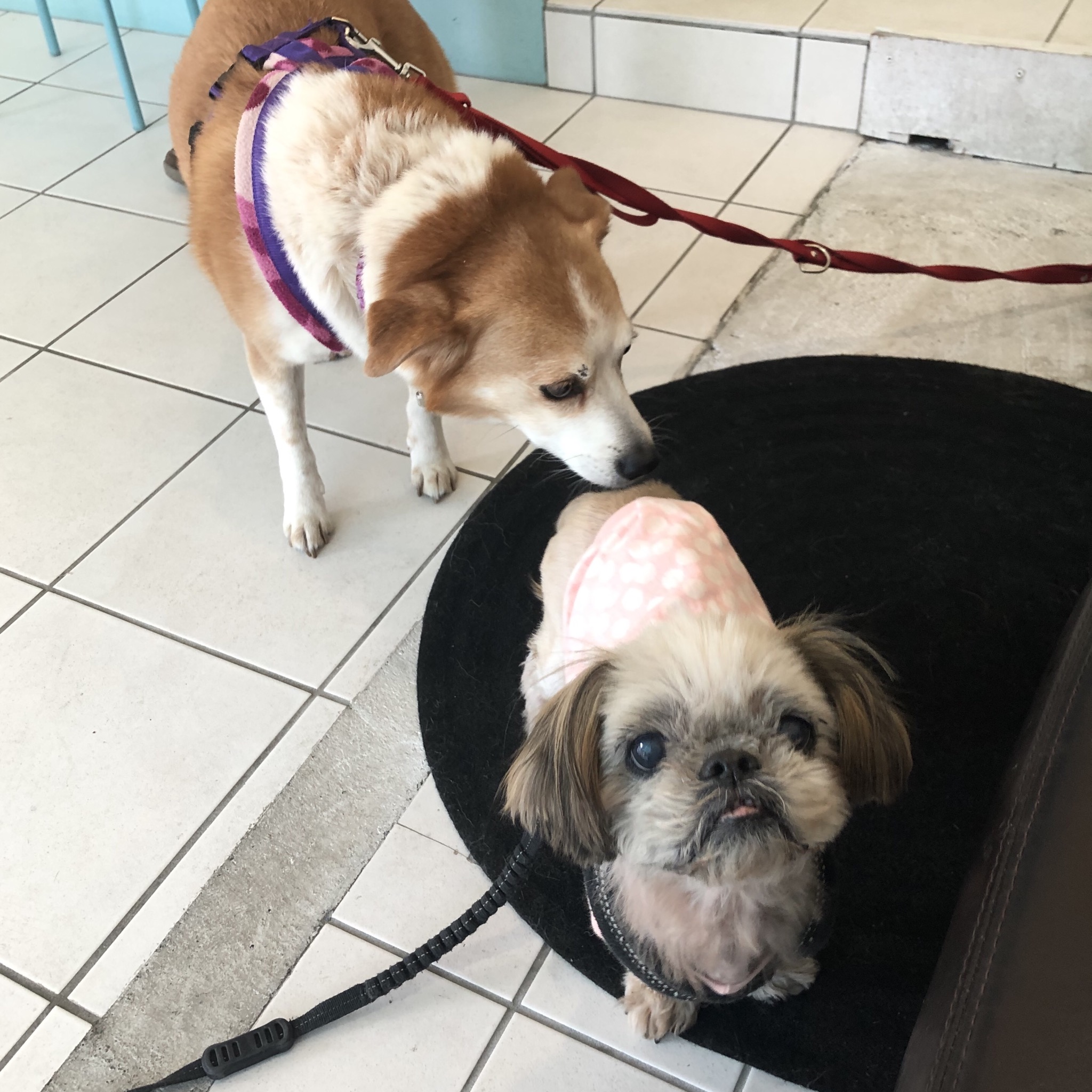 ちゅ❤︎ばさくん、お散歩がんばってるね〜! こちら ハラミちゃんも、かいかいしながらも、 お散歩頑張ってます! 先日、肉球の傷みを解消しようと、保護用のアイテムを購入しました。 敗退。 1ミリも足入れられなかったわ。 そんな、 裸足がよい。というハラミ先輩は、 自ら坂道をチョイス! 坂道を登って大通りに出て、 引き返して、坂を下りました! 寒いな〜、今日はムリ! という時、 Uターンした後に猛烈に早足になります。 あんなに進まなかったのに。 ★ここだけプロフィール★ ポリシー:不満があったらハッキリ伝える ひみつ:時々大きな声で寝言を言う 食事:豪快な食べっぷりと飲みっぷり 引き際:早め 記憶力:高い 好きなフレーズ:わーわーわー 得意な声まね:猫、にわとり 得意な顔まね:研ナオコ 嫌いなこと:目薬 気になること:肉なのか魚なのか 似合う色:さくら色 飼い主になったら出来ること:ギャップ萌え トリビア:実はチョビベロでなくて下唇 テーマ曲:粉雪 ハラミはAngel's Taleの保護犬です ツンデレ系シーズー女子・ハラミ先輩★里親募集中! (仮名・メス・申告11才) 日々の様子 >>>ハラミ日記 ハラミについて>>>プロフィール 保護時の検診>>>代表ブログ 保護時の様子>>>プチステイ先 辿り着けるかわからないけど〜。 PR