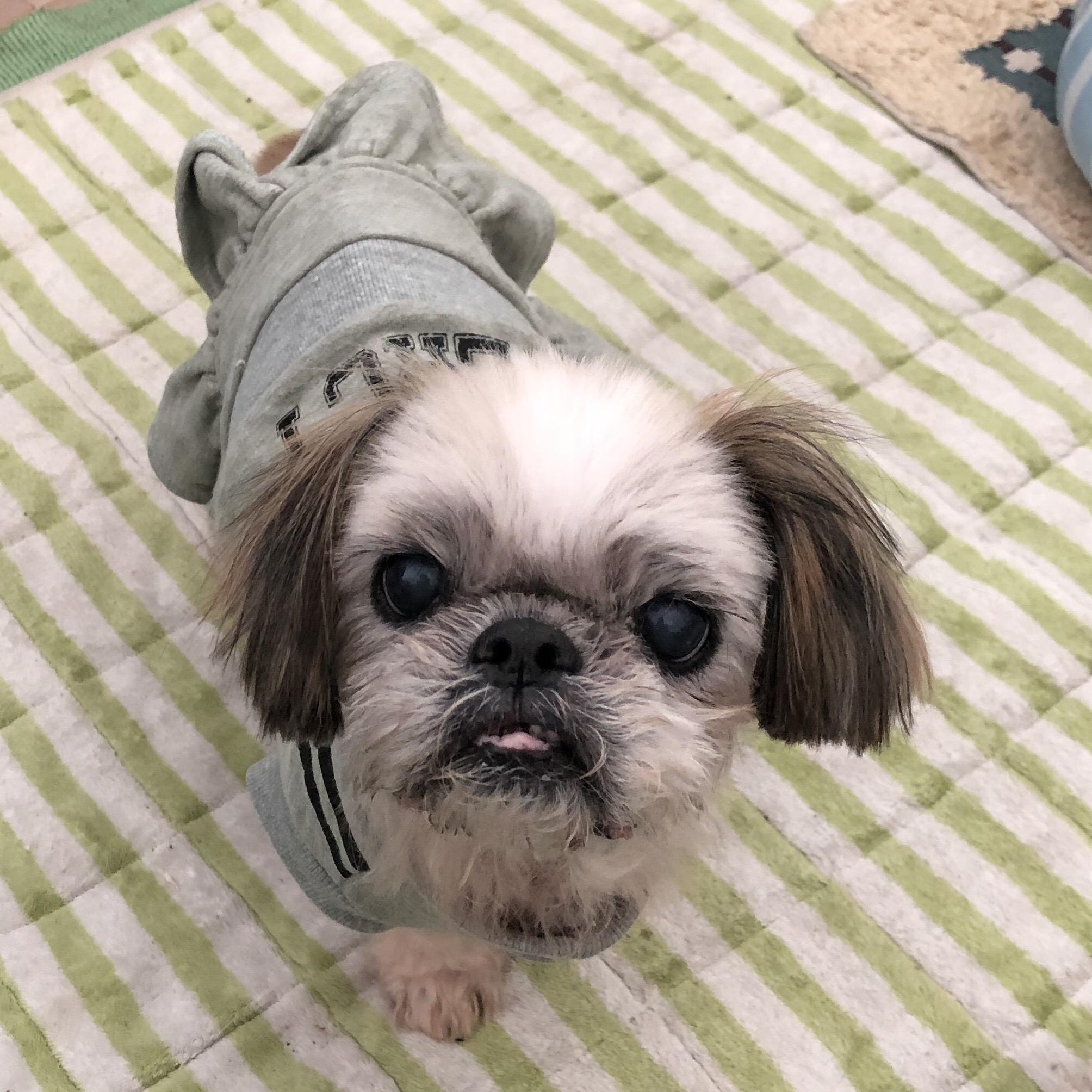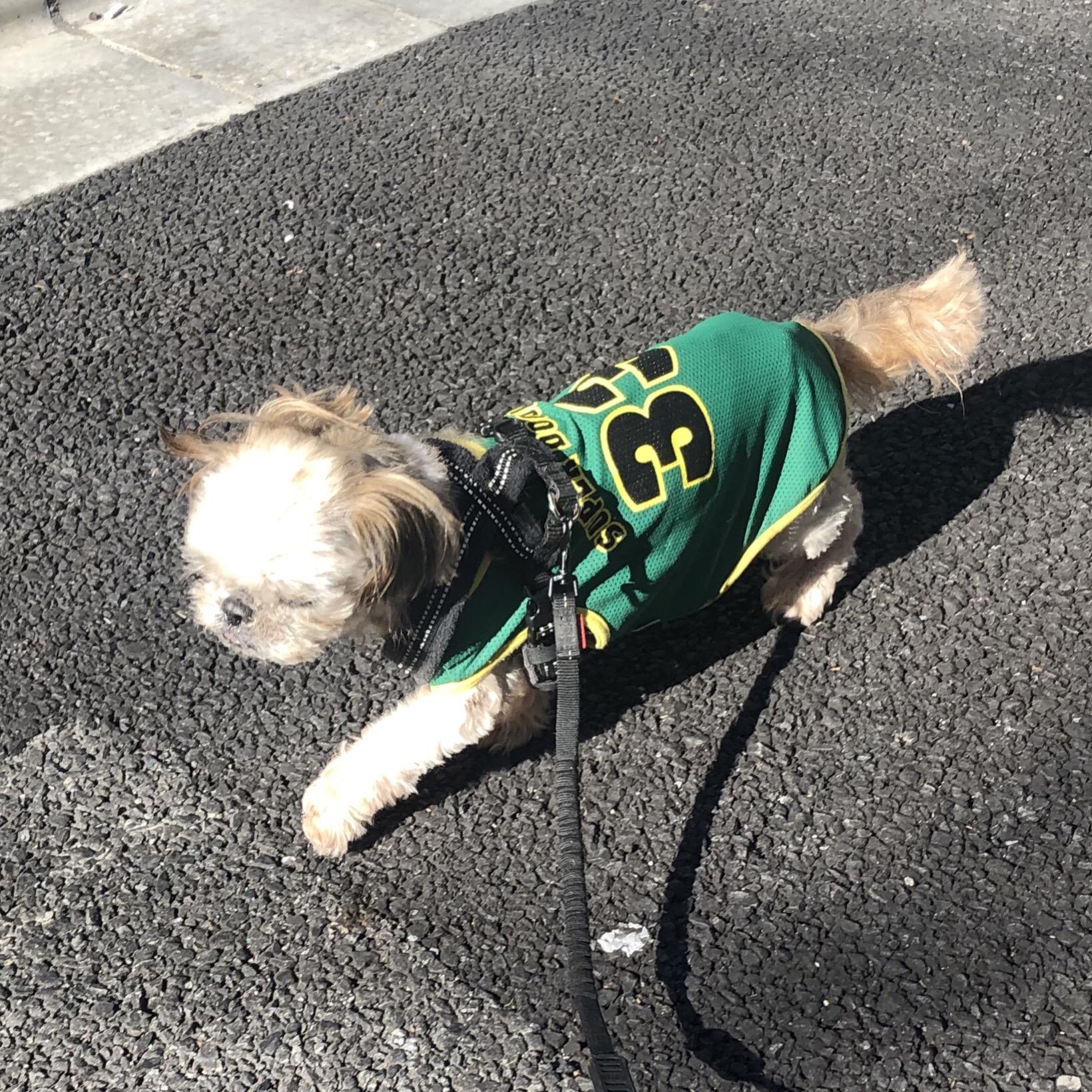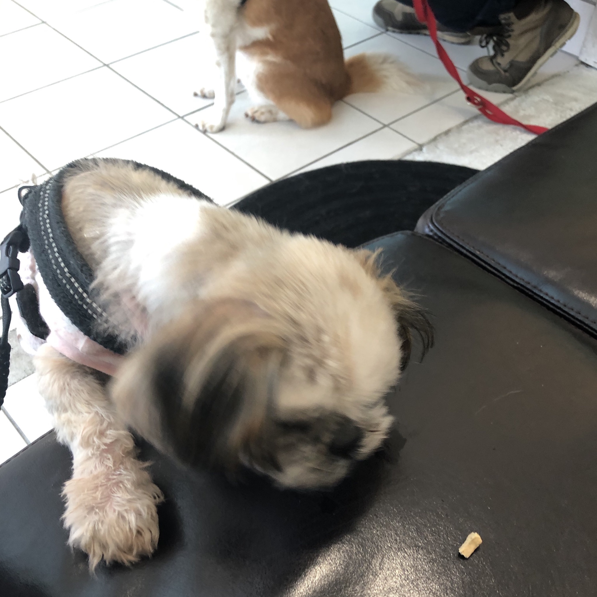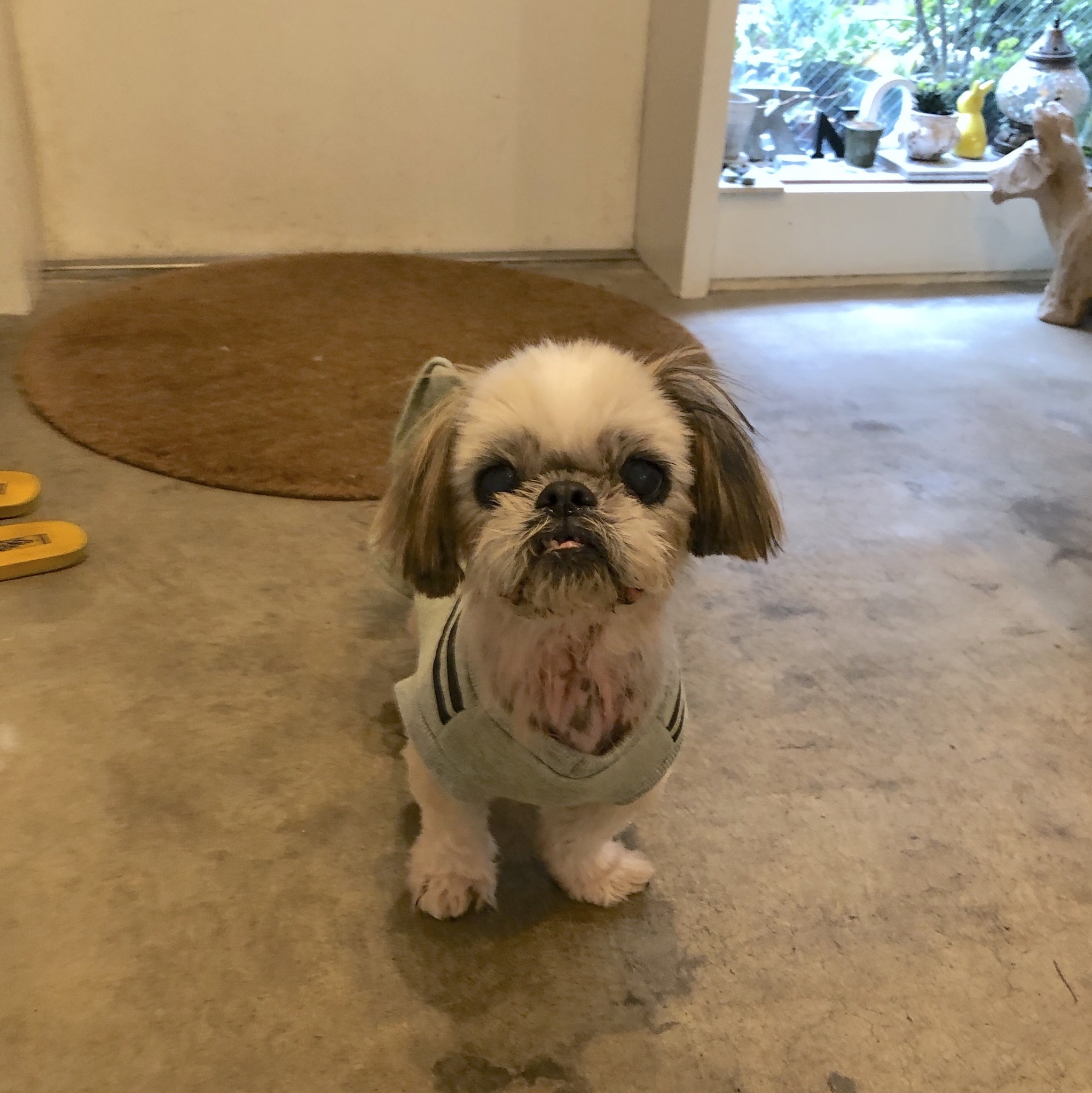 バッチリ可愛く撮れた〜! と思って、後から見たら、、、 やはり、そこは、ハラミちゃん( ;∀;) 足の裏が擦りむけて痛いし、 痒くてすすまないお散歩の毎日ながらも、 前回のシャンプーから、まあまあの状態だったので、4日目にして、同じケアをしました。 フードは、脂多めのものをお休み中。 メニュー ・クレンジングジェル(脂落とし、下腹部と足先) ・ひのきの香りのニームのおふろ(EM&NEEMの入浴剤、脂落とし、保湿) ・ニームシャンプー(低刺激) ・お肌のコンディショナー(保湿) ・耳掃除 ・マイクロシンかゆみケアジェル(横腹、足) ・セラミドジェル(背中、耳) 頻繁にシャンプーしてるので、わりと洗浄力のあるアロビーンシャンプー(保湿)から、ニームシャンプーに変えたんです。 痒くてガジガジしてるのですが、 掻かないで、ふつうにしてたり、 ナメナメ程度だったり、 の時も、増えているような。 頑張ってるな、ハラミちゃん。 お利口さん! ★ここだけプロフィール★ ポリシー:不満があったらハッキリ伝える ひみつ:時々大きな声で寝言を言う 食事:豪快な食べっぷりと飲みっぷり 引き際:早め 記憶力:高い 好きなフレーズ:わーわーわー 得意な声まね:猫、にわとり 得意な顔まね:研ナオコ 嫌いなこと:目薬 気になること:肉なのか魚なのか 似合う色:さくら色 飼い主になったら出来ること:ギャップ萌え ハラミはAngel's Taleの保護犬です ツンデレ系シーズー女子・ハラミ先輩★里親募集中! (仮名・メス・申告11才) 日々の様子 >>>ハラミ日記 ハラミについて>>>プロフィール 保護時の検診>>>代表ブログ 保護時の様子>>>プチステイ先 キャリーバッグで移動する練習もしないとね〜