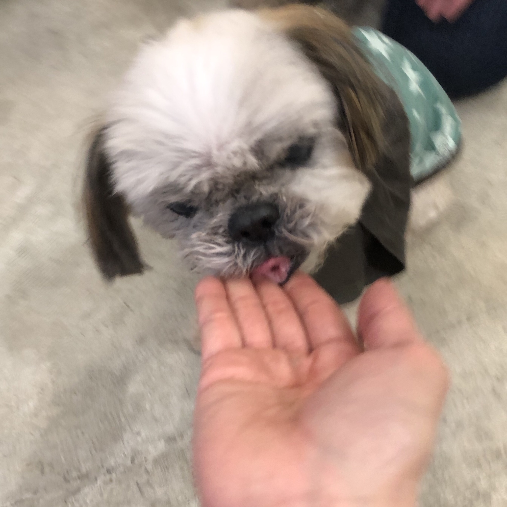 前回の入浴より4日目となり、入浴しました。 前回と同じメニューにしました。 一緒にグループレッスンに参加♪ 右にまがる、左にまがるを練習しました。 オスワリにも挑戦! なんとなく形はつかめてきた模様♪ 他のわんちゃんとも上手にすごせるハラミちゃん。 かぶりものも怒りません! この後、他のわんちゃんよりひと足先に店じまいして、おひざでぬくぬく寝てしまったハラミちゃんでした〜。 帰りは早めに、もう歩けない!と目で語り、 すぐキャリーバッグに入れました。 頑張ったもんね! ★ここだけプロフィール★ ポリシー:不満があったらハッキリ伝える ひみつ:時々大きな声で寝言を言う 食事:豪快な食べっぷりと飲みっぷり 引き際:早め 記憶力:高い 好きなフレーズ:わーわーわー 得意な声まね:猫、にわとり 得意な顔まね:研ナオコ 嫌いなこと:目薬 気になること:肉なのか魚なのか 似合う色:さくら色 飼い主になったら出来ること:ギャップ萌え トリビア:実はチョビベロでなくて下唇 テーマ曲:粉雪 ※皮膚トラブルの為、首輪をはずしています。 ハラミはAngel's Taleの保護犬です ツンデレ系シーズー女子・ハラミ先輩★里親募集中! (仮名・メス・申告11才) 日々の様子 >>>ハラミ日記 ハラミについて>>>プロフィール 保護時の検診>>>代表ブログ 保護時の様子>>>プチステイ先 PR