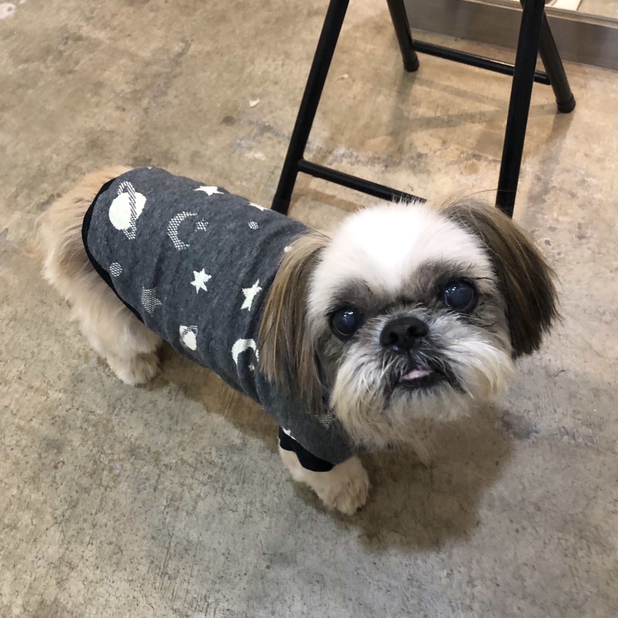 洋服を整理していたら、懐かしの宇宙Tシャツがでてきました! ノフくんに着せていたハナママさんのわんこ服。 ハラミちゃんに着せてみた。 サイズぴったり! 最近のハラミちゃんは、とっても気持ち良さそうによく寝ています! くぉ〜、ぐほ〜と、前はなかった寝息が。 肉付きがよくなったから? 帰ってきても気づいてくれず、 のぞき込んでも、寝息をたてて寝ているので、 番犬にはなりません。 ★ここだけプロフィール★ ポリシー:不満があったらハッキリ伝える ひみつ:時々大きな声で寝言を言う 食事:豪快な食べっぷりと飲みっぷり 引き際:早め 記憶力:高い 好きなフレーズ:わーわーわー 得意な声まね:猫、にわとり 得意な顔まね:研ナオコ 嫌いなこと:目薬 気になること:肉なのか魚なのか 似合う色:さくら色 飼い主になったら出来ること:ギャップ萌え トリビア:実はチョビベロでなくて下唇 テーマ曲:粉雪 有効成分:ブレない女成分ハラミチン配合 ラインスタンプ「ハラミちゃんのきもち」 リリース! ハラミはAngel's Taleの保護犬です ツンデレ系シーズー女子・ハラミ先輩★里親募集中! (仮名・メス・申告12才) 日々の様子 >>>ハラミ日記 ハラミについて>>>プロフィール 保護時の検診>>>代表ブログ 保護時の様子>>>プチステイ先 PR