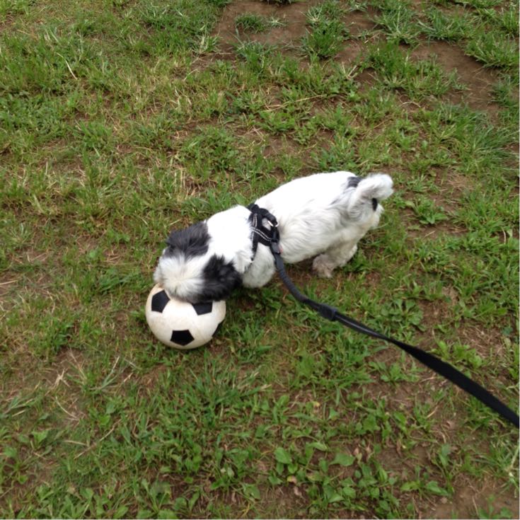 うちのパンダは公園が大好き。 私としては、涼しげな銀杏並木へ行きたいのですが、 坂を下って登るなんて、信じられなーい。 俺は公園に行きたい! と、最近は、公園に真っしぐらです。 ピコピコおもちゃや、自転車のハンドルを見つけた公園で、サッカーボールを見つけました! 吸い付くようなボールさばき! 離しません! 何度蹴っても、すぐ、自分のボールに! サッカー好きの飼い主さんなら、 一緒に遊べるね! パスはしてくれないけどね〜 ずっとドリブル! こんど買ってあげるからね〜、と、 なんとか、終了〜〜! Sol(ソル)はAngel's Taleの保護犬です Sol(太陽)と陽気な暮らし〜★里親募集中! (仮名・オス・申告6才) 日々の様子 >>>ソル日記 ソルのこと>>>プロフィール