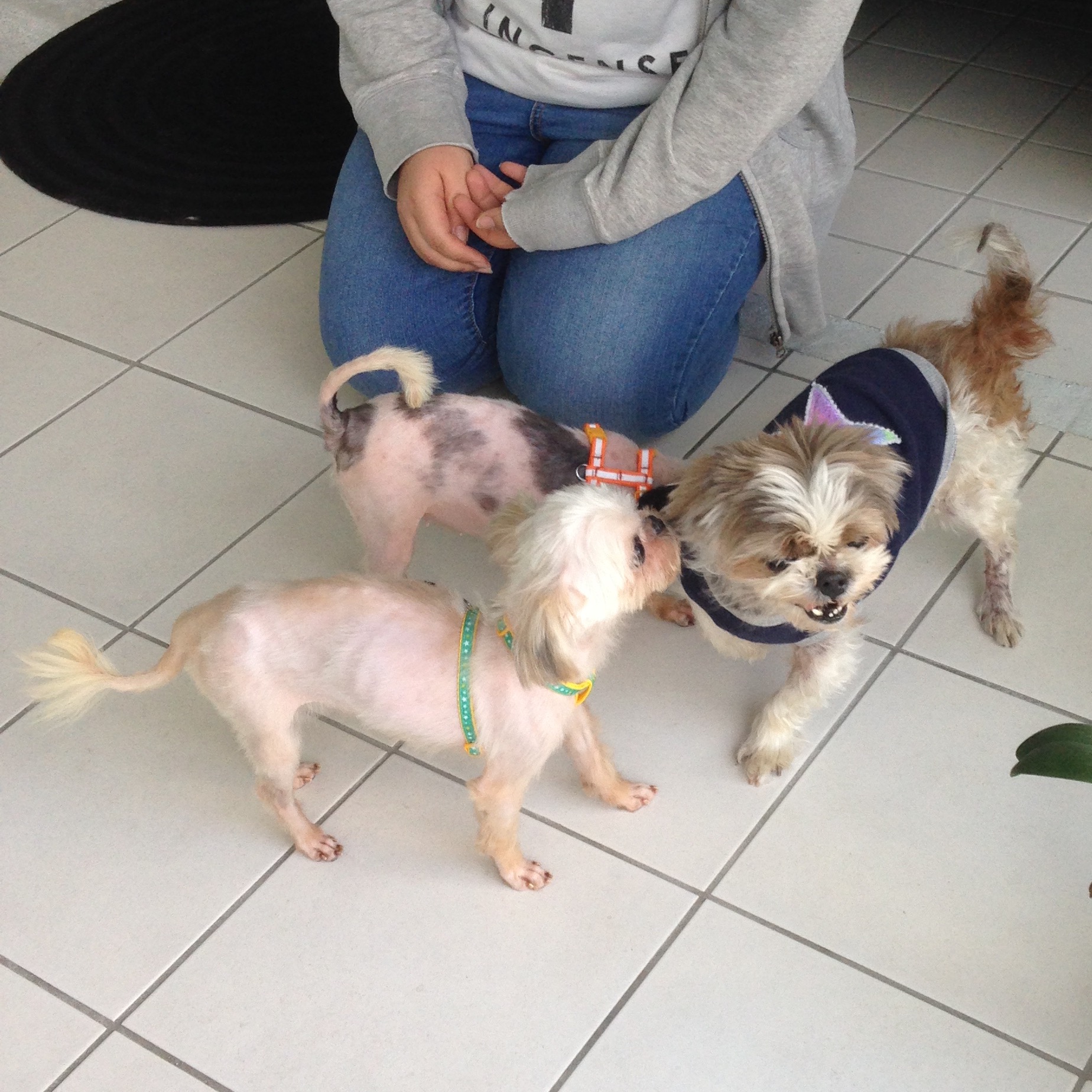 木曜日には、川崎から保護された2匹のメスのシーズーミックスのトリミングをさせていただきました! 川崎女子、略して、かわじょ。 (mameazuさん曰く) 2キロととても小さい二人。 トリミングは、ビビりながらも やらせてくれました。 かわじょ1号 白黒ちゃん かわじょ2号 白茶ちゃん プレイスペースに放ったら、 よく動き回る! ねずみレベルのスピード感 おやつみせたら、大盛り上がり♪ 群がるピラニア・ギャル達 搬送のデレ助さんも、 かわじょが可愛い!とメロメロ。 搬送、お疲れ様でした! キャッキャッ、キャッキャッ、 楽しいチワワシーズーミックスちゃん達。 この後、ついで?に帰還した マシくんを投入ー! とても面白い事になりましたよ(^。^) 次回、ご紹介します♪ プヨンちゃんも、 幸せにな〜〜れ♡ P ぷよぷよ P プヨンは A あらての P ポケモン マシはAngel's Taleの保護犬です ちいさなイケワン★里親募集準備中 (仮名・オス・推定10才) 日々の様子 >>>マシ日記 マシのこと>>>プロフィール