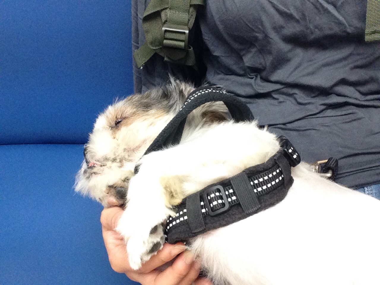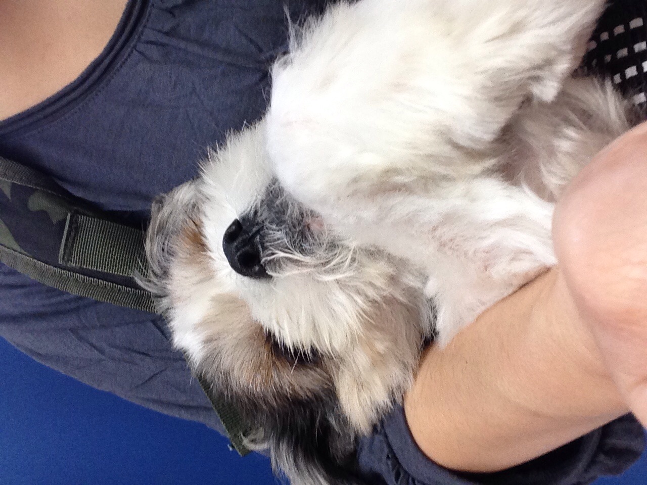 昨晩は、すごく良く寝ていました。 夜中に覗き込んでも、 同じ形で丸まって寝込んでいました。 朝ごはん食べて、トイレに連れてきても、、 寝ました。 外に出したら、 震えて動きません。 10センチ先のオヤツも、時間をかけてたどり着き食べました。 一緒に仕事へ 時々、様子を伺うも、 ずーっと寝てます。 電動ドライバーを使ったら、 吠えられました! 悪人かと疑われています(;^_^A さぁ、帰るぞ〜〜 と、声かけるも 怪しいし! と、動きません(;^_^A 足、弱ってるの〜? と、思ってましたが、 中々のスピードで、歩いてくれました! キャリーバッグも難なくクリア! できるマシくんです! マシはAngel's Taleの保護犬です ちいさなイケワン★里親募集準備中 (仮名・オス・推定10才) 日々の様子 >>>マシ日記 マシのこと>>>プロフィール
