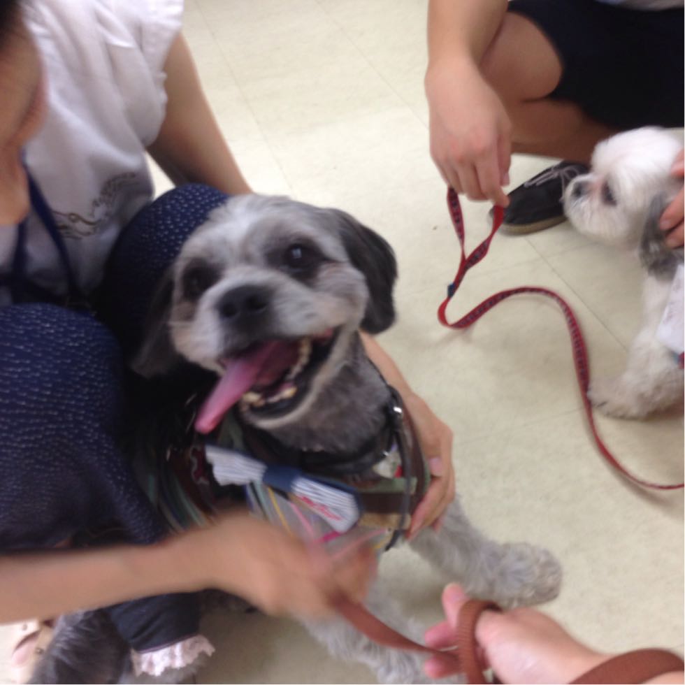 本日は里親会でした! ホッちゃんも参加♪ 本日のホホコレ☆ 似合う!と評判♪ 和服☆ おぼっちゃま風〜♪ 里親会開催の3時間。 垂直ジャンプをしまくりました! 受付担当スタッフに、 いつもは、受付からは、わんちゃんが見えないけど、今日は、時々、ホッちゃんが見えたよ! と言われました(;´Д`A ゲストを踏み台に、ジャンプすることも(;´Д`A 3時間、飛び続けたのに、 お店に帰って、飛びまくり、、 うちに帰って、いつもどおり飛んでいました(;´Д`A お店で、ワンワンしてから、出かけたので、 里親会では、声は、あまり出さずにできました。 が! お店に帰って、また、ワンワンして、 帰り道は、笛を吹き続けました(;´Д`A こんなシーズーもいます。 と、ハントさんが、どなたかに紹介していましたっけ。 ポポちゃんにも会えたし 代表やYukonさんにベタベタできて、 大興奮でした(*^o^*) どんだけ元気なんでしょう〜〜 時々、軽くクラクラしました(;´Д`A ホホルはAngel's Taleの保護犬です シーズーで押し通すつもり!★里親募集中 (仮名・オス・推定10才) 日々の様子 >>>ホホル日記 ホホルのこと>>>プロフィール PR