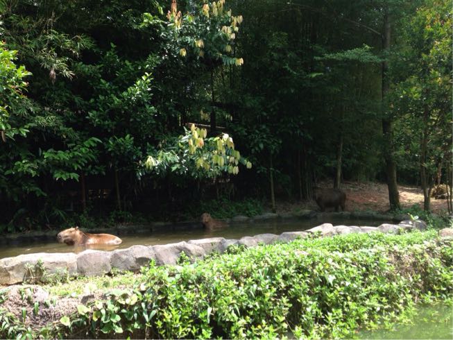 夏の旅行先で、カピバラ 3頭を見ました。