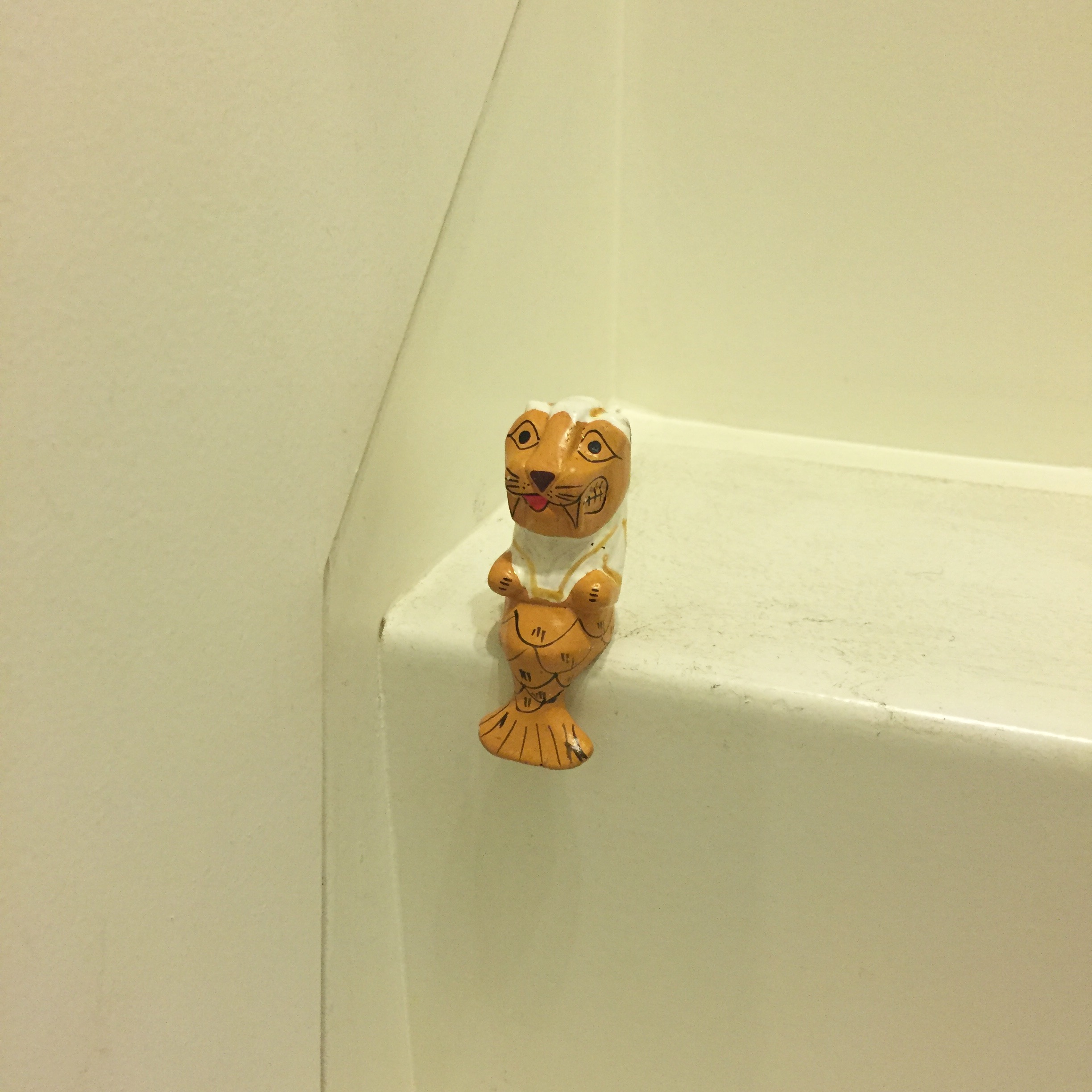 我が家の階段に座ってるマーライオン