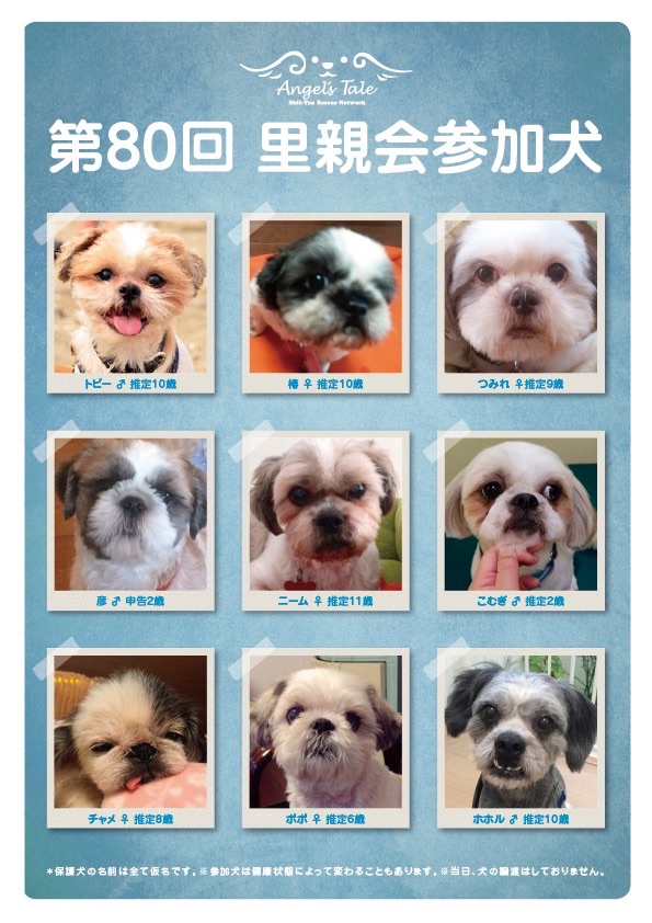 ブチュー合宿中のホホル。 里親会に参加しますよ! ブチュー合宿中の様子はこちら➡︎U^ェ^U 里親募集開始しました! 楽しいわんことの暮らしを目指す方にぴったり。 ホホルくん・プロフィール ●性格: ・元気で活発、人が大好き。いつもかまってほしい明るい性格です。 ●健康状態: ・良好 ・体重・・・7.2kg ●毎日の生活について: ・トイレトレーニング:室内・屋外どちらでもできます。トイレシートの認識があるかもしれません。トレーニング中です。 ・サークル/クレート:始めは鼻泣きしますが、サークルでおとなしく過ごせます。 ・留守番や就寝時:フリーでもいたずらはなく、クレートに入って寝ます。 留守番もできます。 ・吠えに関して:寂しくて鼻鳴きします。騒いでる犬に吠えます。 ・車移動に関して:クレートでおとなしく車移動できます。車酔いはありません。 ・お手入れに関して:全てやらせてくれます。 ●里親さまにお願いしたいこと: ・活発なので、お散歩など運動をさせてあげて下さい。 ●アピールポイント: ・犬らしく!明るく元気なスーパーかまってちゃん! ホホルはAngel's Taleの保護犬です シーズーで押し通すつもり!★里親募集中 (仮名・オス・推定10才) 日々の様子 >>>ホホル日記 ホホルのこと>>>プロフィール 安心♪(´ε` ) |