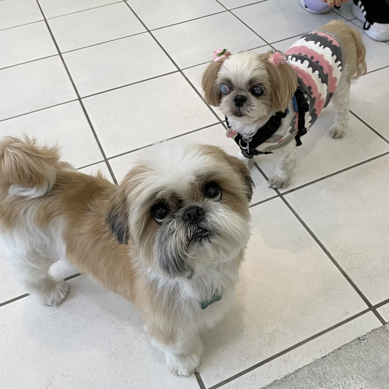 一緒に通勤するのも最後。 ご来店のエンジェルズ・テールの卒業犬と遊ばせてもらいました♪ スレンダー美女・二人組! つむぎちゃんと桜香(さくらこ)ちゃん❤︎ 前に会った時もでしたが、 何故か、つーちゃんとちびたくんが組になり、 2:1になります。 2:1 2:1 2:1 よく見ると、ちびたくんの顔が怖い〜 ご令嬢のSP的な? そして、夕方には、 エンジェルズ・テールの卒業犬がお買い物に♪ 鈴優(すう)ちゃん❤︎ 〜 ここだけプロフィール 〜 心構え:気持ちは3歳 性格:天然 得意技:大振りのオテ 日課:ベッドとの格闘 トイレ:外派 雨:行きたくない派 丸:よけない派 習性:あらゆる事に首をつっこむ うわさ:服はワイルドに筋肉で破る 好みのタイプ:玉つき男子(若め) 周囲の評価:つい見ちゃう ちびたはAngel's Taleの保護犬です 世間の荒波を知るよしもない家庭犬★トライアル予定! (仮名・オス・申告11才) 日々の様子 >>>ちびた日記 ちびたについて>>>プロフィール 保護時の検診>>>代表ブログ 保護時の事>>>代表ブログ <ちびたくんへのご支援をお考えの方へ> 洋服やオヤツが難しいちびたくんですが、リストからご支援いただけたら嬉しいです。 「欲しいものリスト」とは、ご支援者さまと預かりスタッフの住所や氏名を明かすことなく(※)、必要としているご支援品を直接保護犬に届けることができるAmazonのしくみです。ご支援者さまは、応援メッセージや贈り主名を添えることもできますし匿名でのご支援も可能です(※)。 ※設定や条件によります。 ★★★希望数のご支援をいただきました!★★★ ちびたくんへのギフトありがとうございました♪ ちびたの欲しいものリストPR