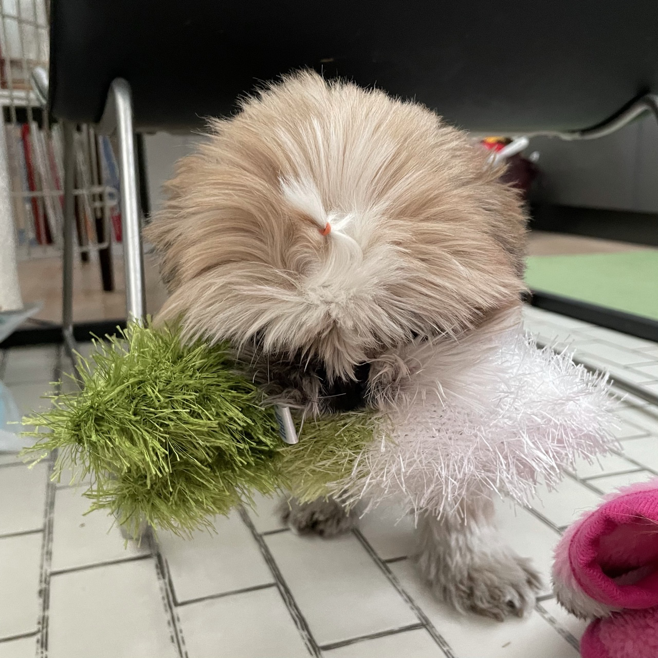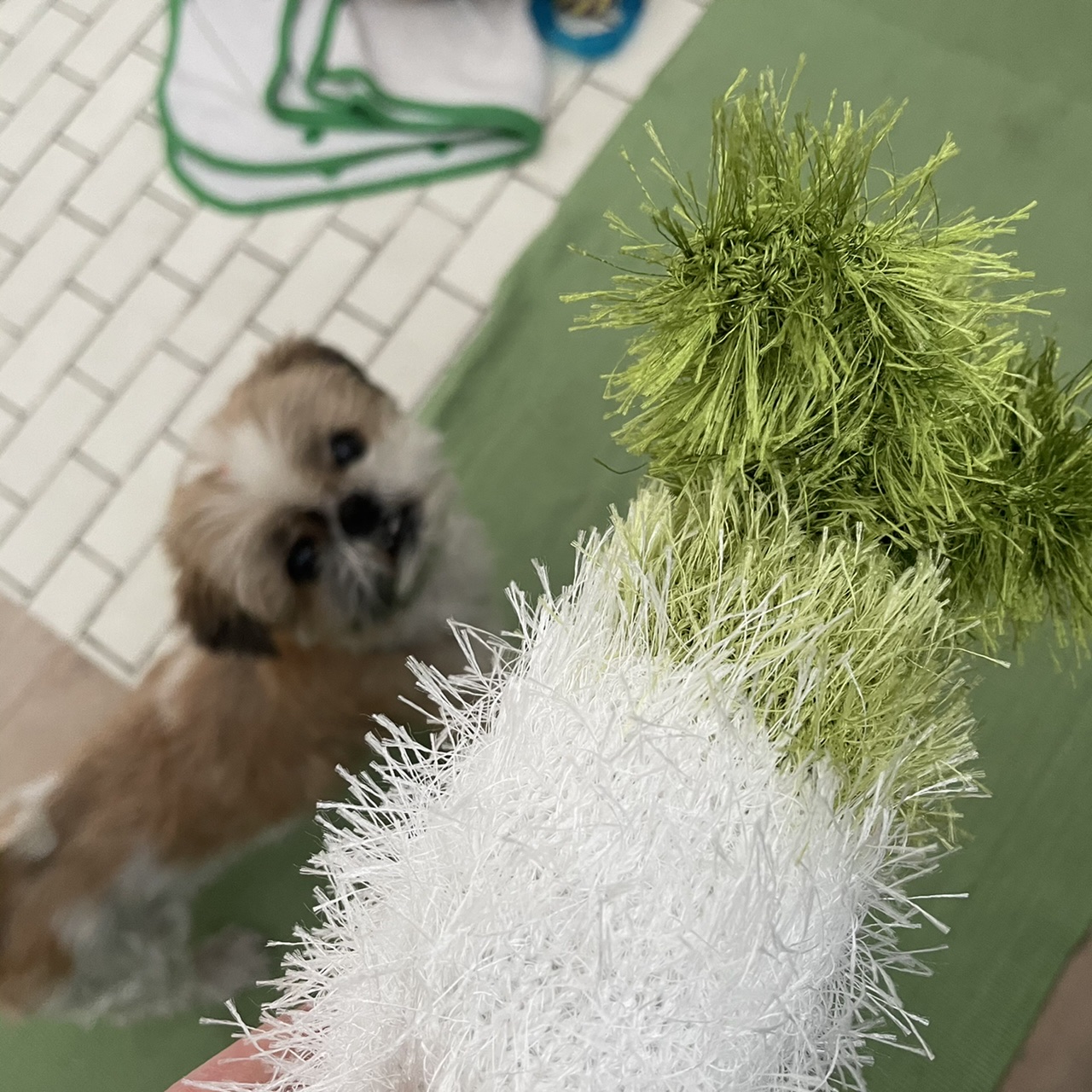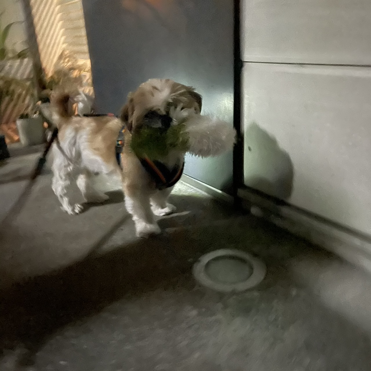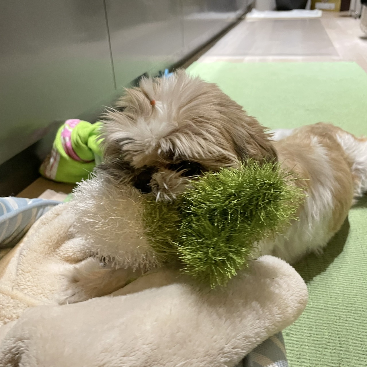事件ばかり起きるので、、 お気に入りだったほね型おもちゃにかわる ふわふわのおもちゃを投入! はみがきおもちゃ・オーマロー だいこん。 気に入ったようです♪ 取られまい!と警戒中〜 お散歩に行くよ!と言っても離さず、 そのままハーネスをつけました。 どうすんの?お散歩。 つづく 〜 ここだけプロフィール 〜 心構え:気持ちは3歳 性格:天然 得意技:オテ(オカワリは聞いたことない) 日課:ベッドとの格闘 トイレ:外派 雨:行きたくない派 丸:よけない派 習性:あらゆる事に首をつっこむ うわさ:服はワイルドに筋肉で破る 好みのタイプ:玉つき男子(若め) 周囲の評価:つい見ちゃう ちびたはAngel's Taleの保護犬です 世間の荒波を知るよしもない家庭犬★里親募集中! (仮名・オス・申告11才) 日々の様子 >>>ちびた日記 ちびたについて>>>プロフィール 保護時の検診>>>代表ブログ 保護時の事>>>代表ブログ <ちびたくんへのご支援をお考えの方へ> 洋服やオヤツが難しいちびたくんですが、リストからご支援いただけたら嬉しいです。 「欲しいものリスト」とは、ご支援者さまと預かりスタッフの住所や氏名を明かすことなく(※)、必要としているご支援品を直接保護犬に届けることができるAmazonのしくみです。ご支援者さまは、応援メッセージや贈り主名を添えることもできますし匿名でのご支援も可能です(※)。 ※設定や条件によります。 ★★★希望数のご支援をいただきました!★★★ ちびたくんへのギフトありがとうございました♪ ちびたの欲しいものリスト