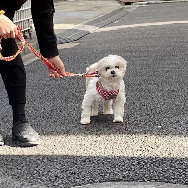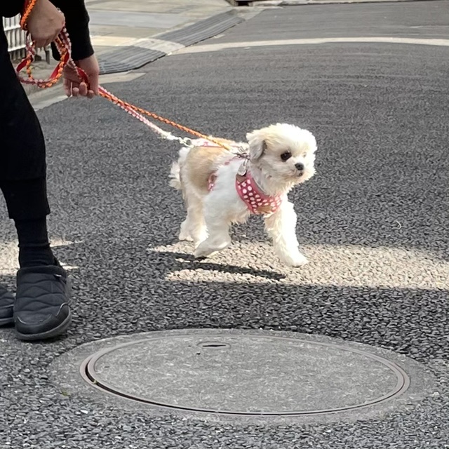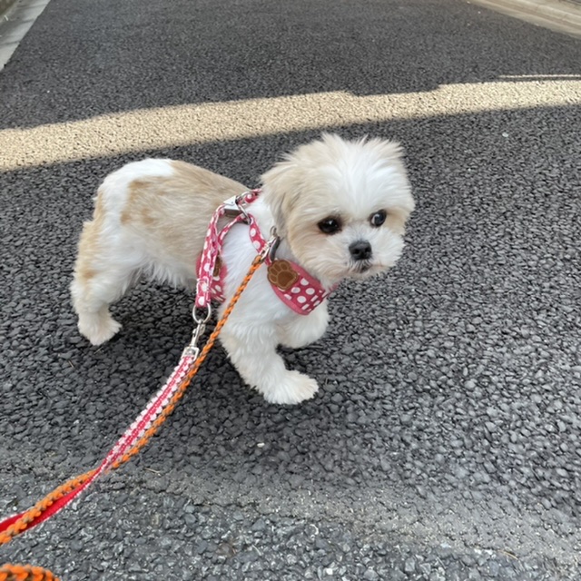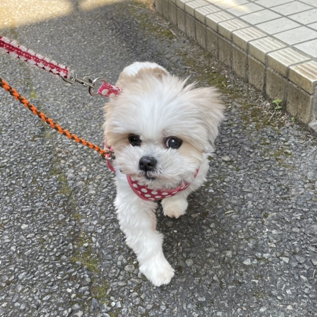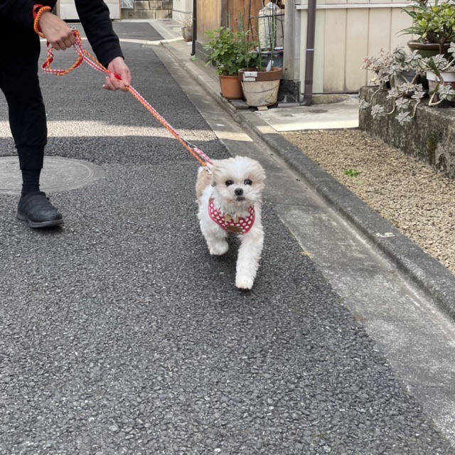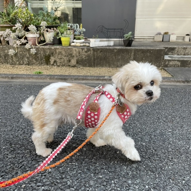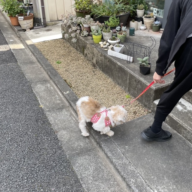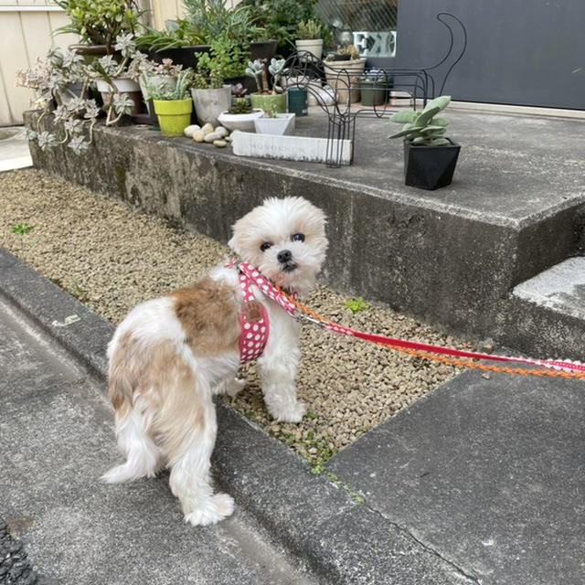 お散歩未満の外んぽイルちゃんです。